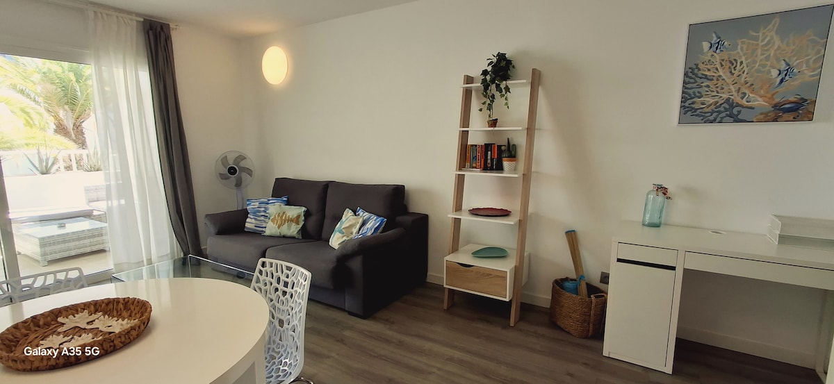 In dem von César Manrique Los Molinos-Komplex haben wir eine schöne Erdgeschosswohnung mit einem Schlafzimmer, eine ausgestattete Küche, eine große Terrasse und einen schönen und ruhigen Panoramablick über den Pool und die Berge. Das Apartment verfügt über WLAN und internationale Kanäle. Der Komplex verfügt über kostenlose Parkplätze, Schwimmbäder und einen Spielplatz. In der Nähe befinden sich eine Bank, Supermärkte, Geschäfte und Restaurants.