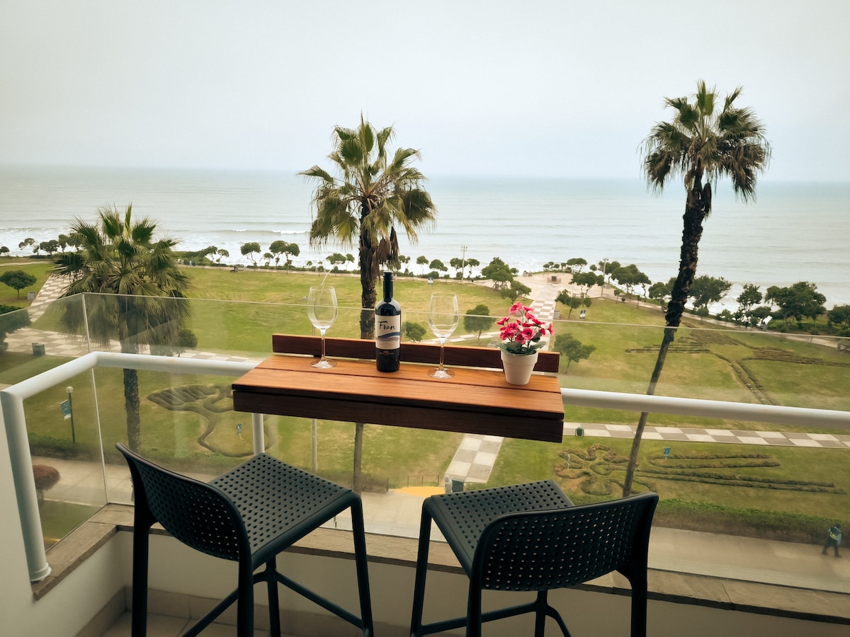 Ein Rückzugsort am Meer für zwei Personen. Das Hotel liegt in San Miguel, nur 15 Minuten vom Flughafen Jorge Chávez und 5 Minuten vom Showzentrum Arena 1 an der grünen Küste entfernt. Sie verfügt über eine ausgestattete Küche, 2 Bäder und einen privaten Balkon mit Meerblick. Perfekt für Konzerte, romantische Kurzurlaube, Ferien oder Ausflüge. Mit schnellem WLAN, Smart-TV mit Netflix, Disney und Star+ Accounts für einen komfortablen und angenehmen Aufenthalt. Cochera überdacht mit zusätzlicher Zahlung.