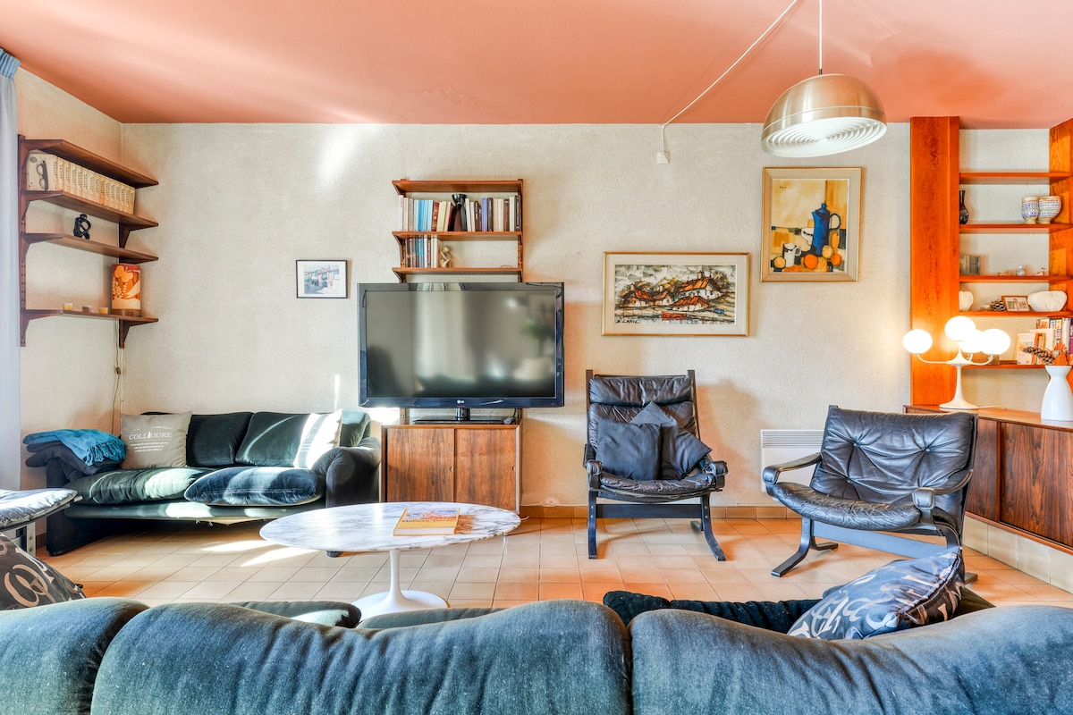 Die Wohnung befindet sich in einem Mehrfamilienhaus aus dem frühen 20. Jahrhundert, im 3. Stock (ohne Aufzug). Sie blickt auf das Meer und den Strand des Dorfes. Die Atmosphäre ist magisch vom Wohnzimmer aus, das über 2 Terrassentüren mit Blick auf das Mittelmeer verfügt und von denen man abends, wenn das Dorf ruhig ist, das Rauschen der Wellen hört. Cerbère ist ein etwas zeitloses Dorf mit einem Hauch von Ende der Welt, verschont vom Massentourismus, an einer wilden und wenig bebauten Küste.
