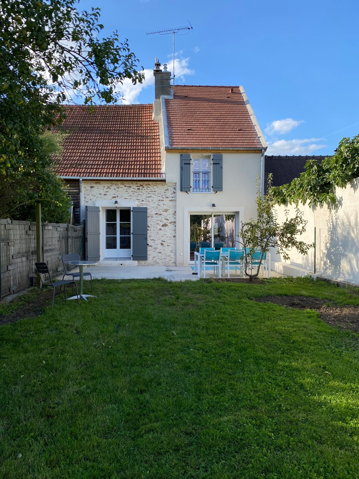 Sehr angenehmes, kürzlich renoviertes Einfamilienhaus am Ende des Gartens, ruhig, 60 Quadratmeter. Profitiere von einem privaten Eingang und Parkplatz sowie einem mit Gras bedeckten Dach. 5 Gehminuten vom Bahnhof entfernt, der dich alle 30 Minuten ins Zentrum von Paris oder in 20 Minuten nach Disneyland bringt. Nur wenige Gehminuten vom Stadtzentrum und seinen Geschäften entfernt. In der Nähe von Lagny und seinem Bauernmarkt (dreimal pro Woche und sonntags) und seinen vielen Geschäften. Der Garten ist groß und wird mit unserem eigenen Haus geteilt.