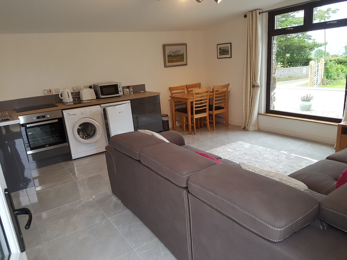 Nordirland Tourismusverband zertifiziert. Wunderschön eingerichtete, eigenständige Wohnung mit Schlafzimmer, Badezimmer, Wohnzimmer und Küche. Doppelbett im Schlafzimmer mit schöner Aussicht über die Landschaft sowohl vom Wohnzimmer als auch vom Schlafzimmer. Alle Einrichtungen, die du benötigst, wenn du fast oder für einen Landurlaub arbeitest. WLAN in der Wohnung verfügbar. Öffentliche Verkehrsmittel sind gut ins Zentrum von Belfast, Holywood und Bangor, aber ein Auto ist bequemer.