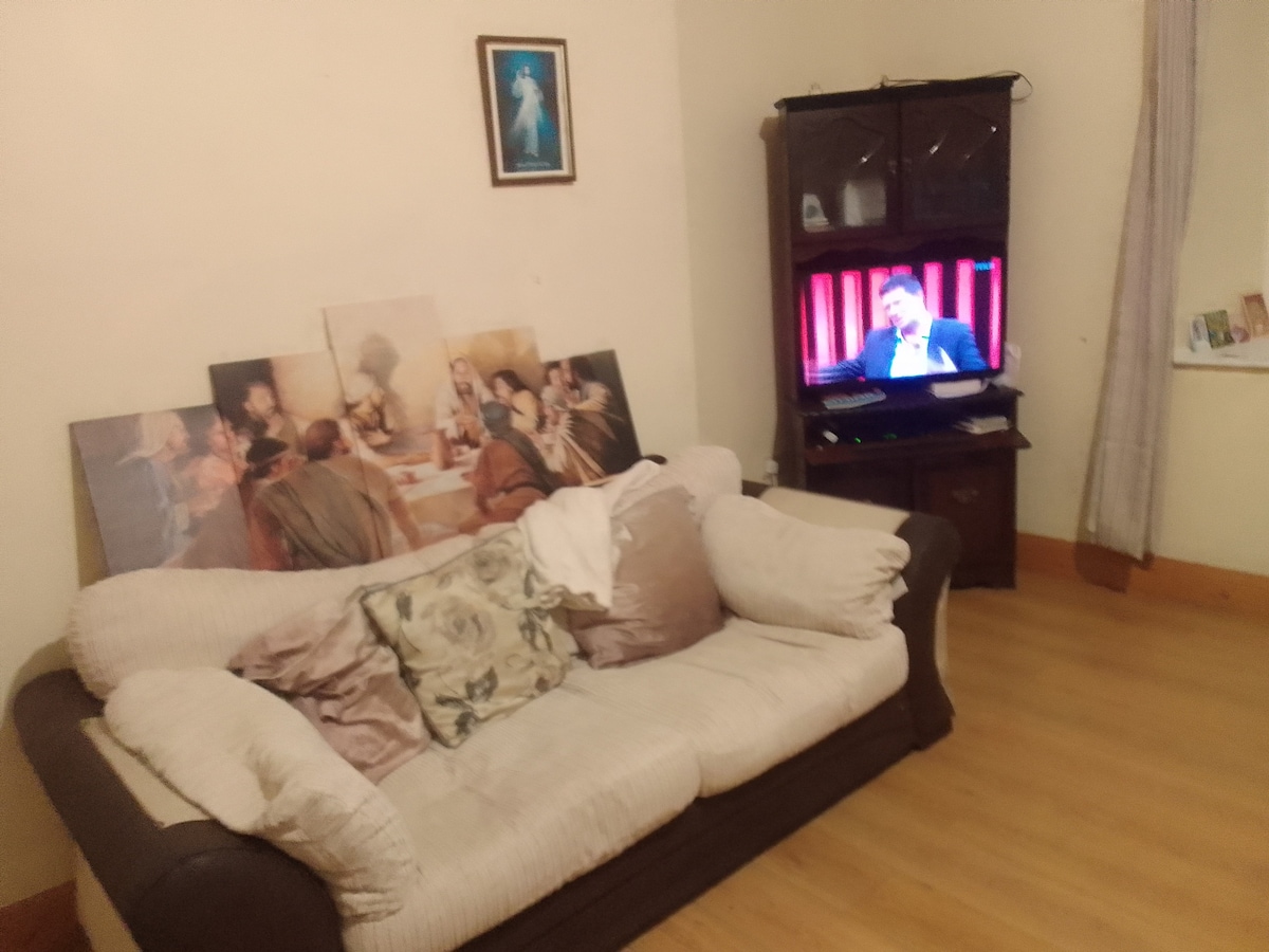 Willkommen in meiner neu renovierten Wohnung in Bagenalstown, County Carlow, Irland. Perfekt für Paare oder Alleinreisende, diese gemütliche und komfortable Wohnung liegt zentral in der Nähe von Supermärkten, Kneipen und Restaurants. Genieße schöne Spaziergänge entlang des Flusses Barrow, nur 10 Meter von der Tür entfernt. Die Wohnung verfügt über eine voll ausgestattete Küche, ein helles Wohnzimmer mit Flachbild-TV, ein gemütliches Schlafzimmer mit Doppelbett und reichlich Stauraum und ein Badezimmer mit Dusche, Waschbecken und Toilette.
