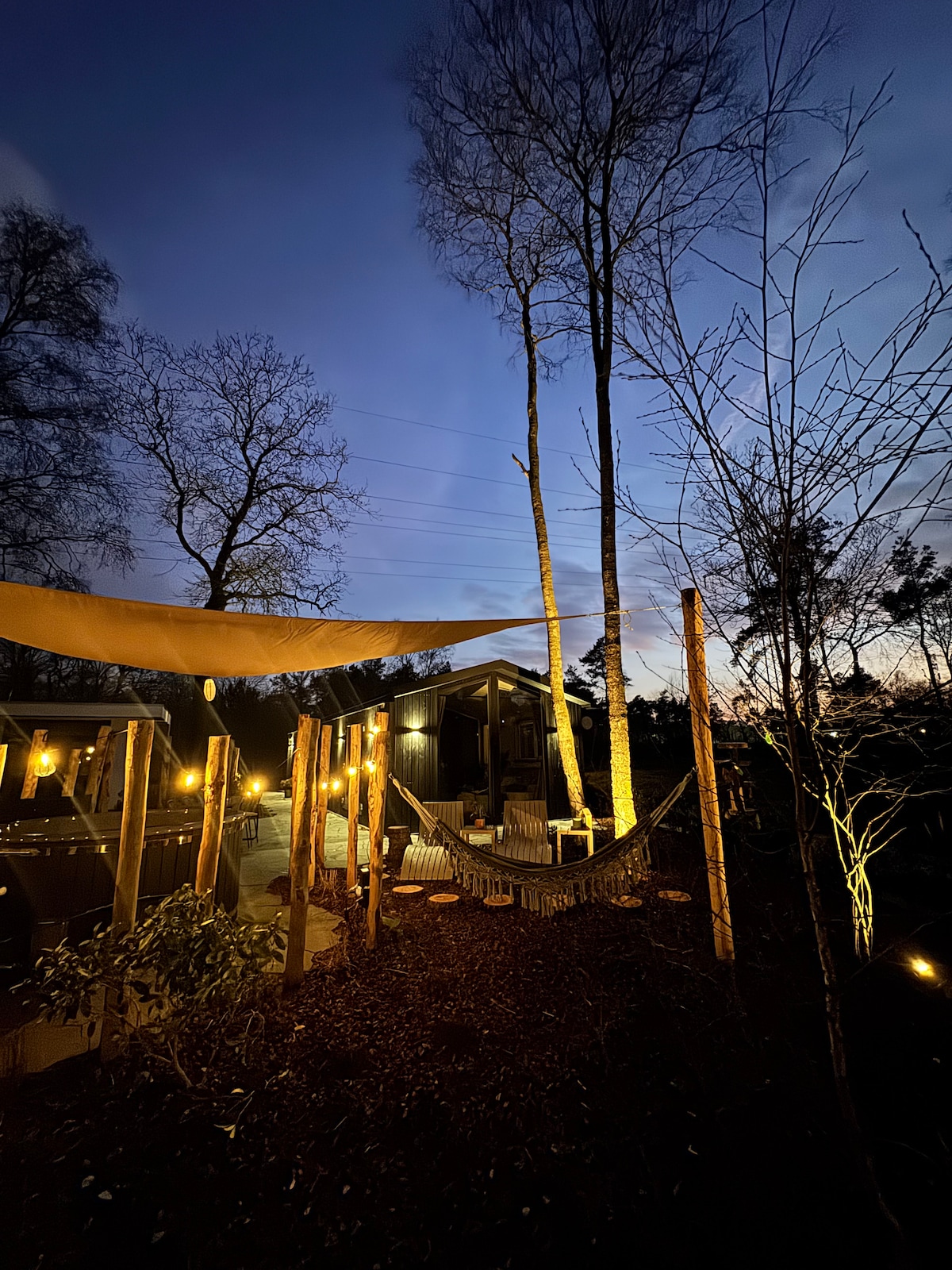 Lodge mit eigenem Wellnessbereich unter den Bäumen