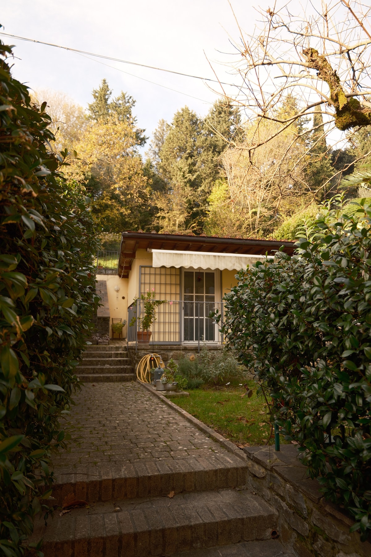 Vicinissimo a Firenze, nella quiete della campagna e in una zona molto più fresca della città Una casa indipendente circondata da un giardino riservato agli ospiti . Al piano terra sala da pranzo con angolo cucina, camera da letto e bagno. Al piano inferiore salottino con divano e una stanza giochi. Nel giardino sono disponibili un barbecue, una zona coperta ed un playground per il basket. La privacy è assicurata da una fitta siepe. Parcheggio privato con accesso esclusivo.