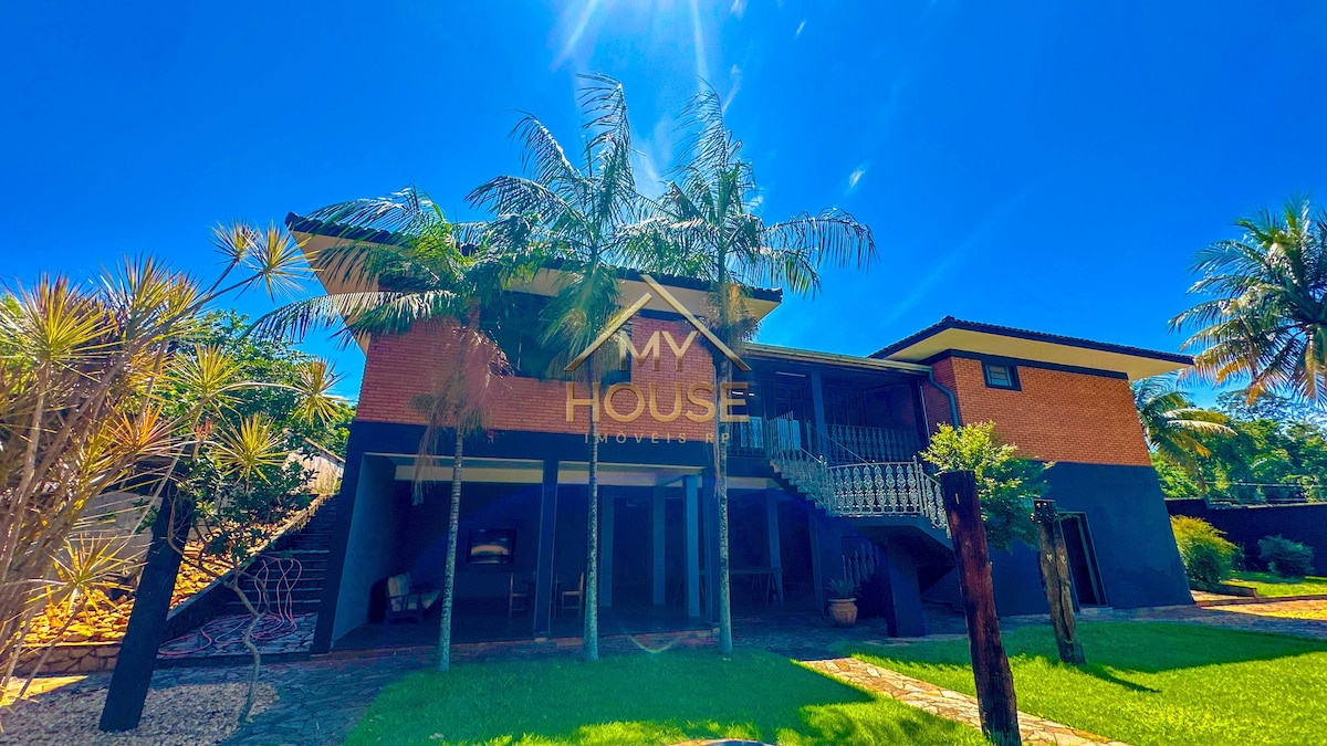 Geräumiges, komfortables Haus mit 3 klimatisierten Schlafzimmern, Swimmingpool und Gourmetbereich mit Grill – ideal für besondere Momente mit der Familie. Privilegierte Lage in Ribeirânia, 15 Minuten vom Taiwan Event Center und Golf Space, ideal für diejenigen, die zu Abschlussfeiern und Veranstaltungen kommen. Neben Novo Shopping, Hard Rock Cafe, Arena NicNet, Parque Curupira und den UNAERP und Estácio Colleges.