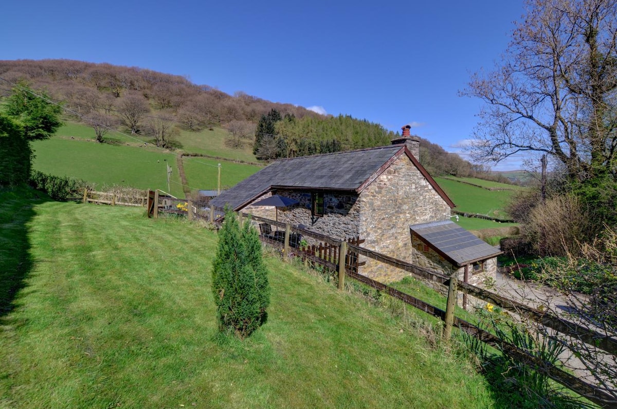 Ein gemütliches, freistehendes Steinhaus in einem ruhigen grünen Tal unterhalb von Cefn Llwydallt. Wir sind 1000 Fuß hoch und die Aussicht ist brillant! Es gibt ein abgelegenes Gefühl, „von allem wegzukommen“, aber wir sind nur 3 Meilen von der Hauptstraße A470 und eine kurze Fahrt von Hay-on-Wye, Brecon, Builth Wells und den Brecon Beacons entfernt. Perfekt für einen Selbstversorger-Aufenthalt. Unten ist es offen gestaltet, mit geräumigen Küchen-, Ess- und Loungebereichen und einer Toilette; oben gibt es zwei Schlafzimmer und ein Badezimmer mit Dusche und WC.