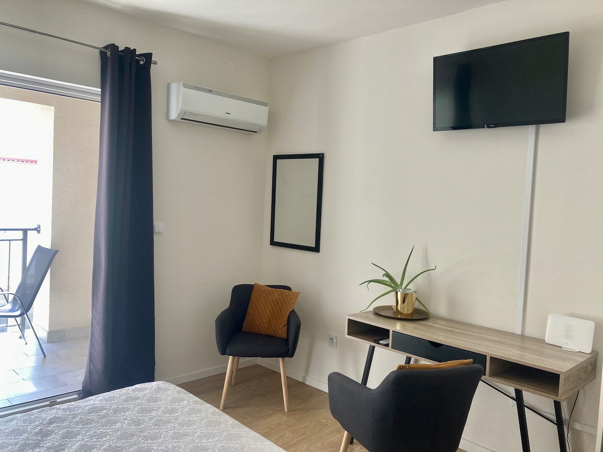 Cute, newly renovated studio. Perfect for one to two people! It is situated in the heart of a typical Mediterranean town, right next to the medieval castle and a church, on the ground floor of a 130-year-old building. 80 cm thick walls protect you from heat and cold, and new doors and windows from the sound of church bells. The sea and the center are 5 minutes by foot. There is good WIFI and smart TV with cable channels. Parking is public, free, nearby, and easy to acquire.