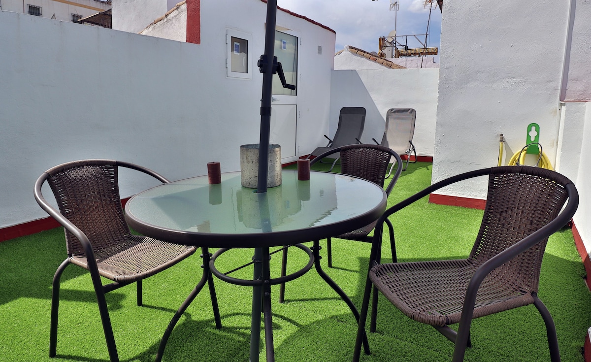 Atico renoviert, sehr ZENTRAL, neben der Plz. de la Corredera. Große private Terrasse von 36, um sich nach einem intensiven Tag zu entspannen und Córdoba zwischen Labyrinthen von Straßen zu entdecken. Es verfügt über ein geräumiges Schlafzimmer mit einem extra großen Doppelbett und einem kompletten Badezimmer. Wohnzimmer mit Schlafsofa, Fernseher, Musik, Büchern, Spielen… Integrierte und voll ausgestattete Küche mit direktem Zugang zur Terrasse und sehr hell. Bitte besuche uns.