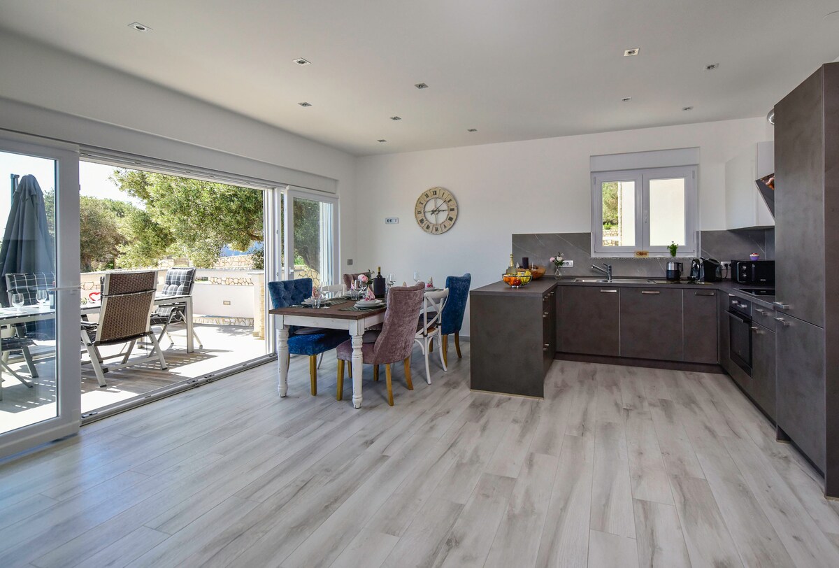 Die Unterkunft befindet sich direkt an der Küste in der schönen türkisfarbenen und dynamischen Bucht von Kosirina. Sie bietet Privatsphäre,umgeben von viel Grün und Blumen im Schatten eines jahrhundertealten Olivenbaums. Sie besteht aus einem Wohnzimmer, einer Küche, einem Zimmer und einem Badezimmer. Es gibt zwei französische Betten(Galerie) im Zimmer. Das Wohnzimmer ist mit beweglichen Wänden verglast und bietet Blick auf das Meer und die gesamte Bucht. Die Terrasse ist überdacht und die Gäste haben 2 Liegestühle, 2 Schaukeln,SUP(Paddelbrett), Grill, Solar-Außendusche...