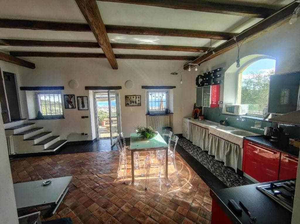 Villa circondata dal verde e dagli ulivi tipici liguri. All'interno del piccolo parco è posto un delizioso pergolato con una grande cucina molto spaziosa e dotata di un gradevole caminetto. La casa è su due piani con 3 camere da letto, 3 bagni e ampia living room con angolo cottura. Si può accedere da 2 ingressi con 3 posti auto. Copertura WIFI. Aria condizionata sui 2 piani. Mare raggiungibile a piedi in 5 minuti. La tassa di soggiorno è € 2,50 a persona maggiore di 15 anni.