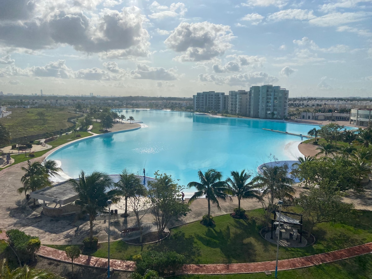Unglaubliche Aussicht in einer Wohnung mit zwei Schlafzimmern: Zugang zur Lagune, Swimmingpool, Paddleboarding, voll ausgestattete Küche, WLAN, Wohnzimmer, Esszimmer und vieles mehr. Unsere Wohnung ist komplett möbliert und hat eine tolle Aussicht. Wenn du auf der Suche nach einem ruhigen und angenehmen Ort bist, um einen tollen Urlaub zu verbringen, brauchst du nicht lange weitersuchen! Du kannst die Lagune erreichen und ihre Pools genießen. Es gibt einen Oxxo-Supermarkt in der Anlage, nur 5 Minuten entfernt.