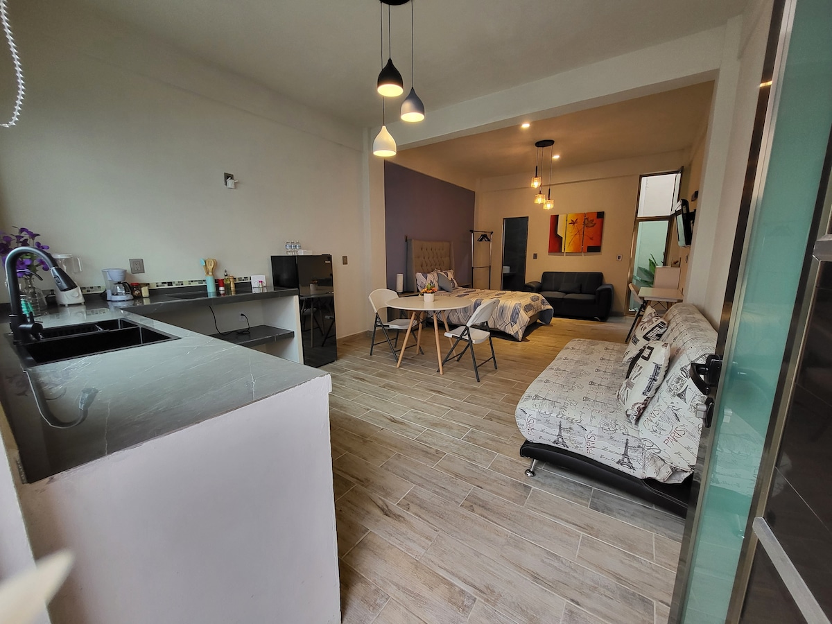 Entspanne dich in diesem schönen Loft, wir haben BILLS. Wenn du zur Arbeit kommst oder spazieren gehst, ist es der perfekte Ort im Zentrum der schönen Zauberstadt Orizaba, Ver. Drei Blocks vom ADO-Terminal entfernt, ein paar Minuten mit dem Auto oder zu Fuß vom Poliforum entfernt, in der Nähe von Supermärkten Aurrará, Chedrahui, Restaurants, Pizzerien. Es verfügt über einen privaten Parkplatz. Sehr sicherer Ort. In der Nähe des Covadonga-Krankenhauses und 10 Minuten vom IMSSS-Krankenhaus und dem Concordia-Krankenhaus entfernt.