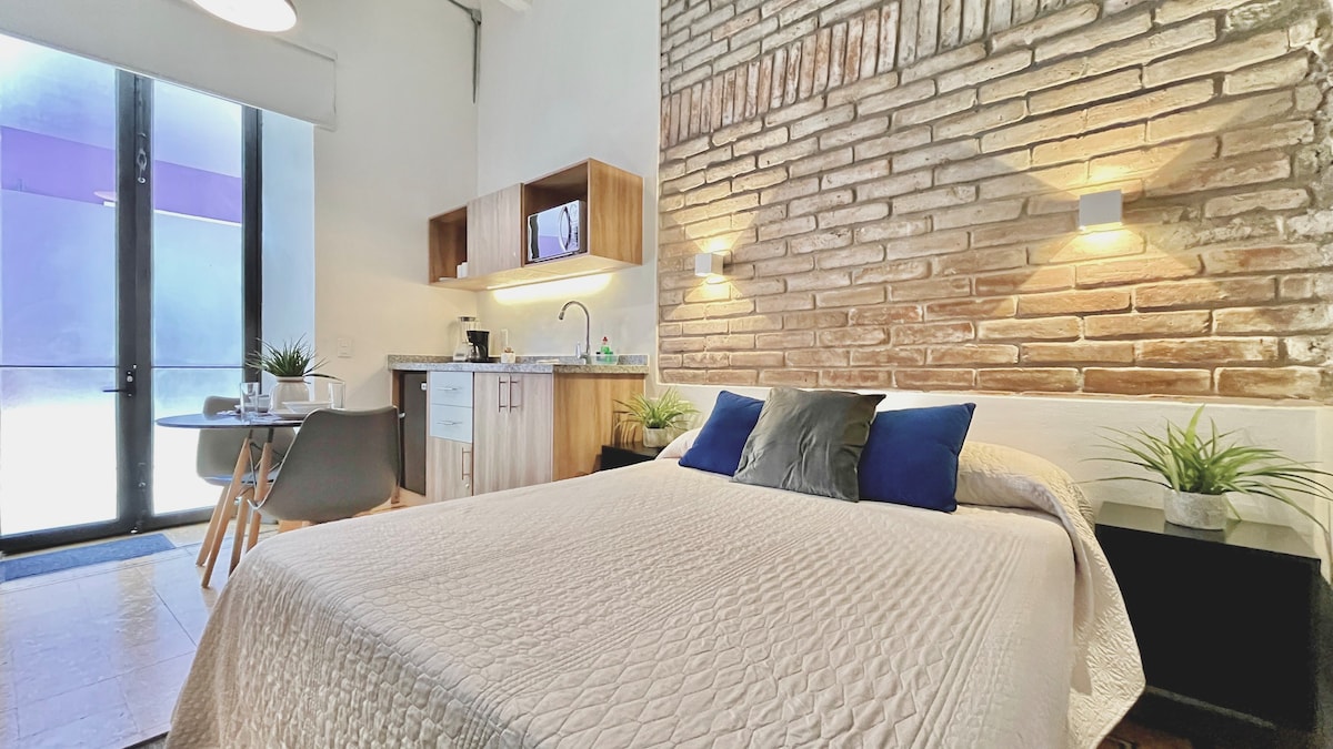 Este acogedor espacio te invita a disfrutar del Centro Histórico; combinando elementos modernos resaltando características de un edificio colonial construido a finales de 1900. Aunque a pie de calle se respira una gran tranquilidad por la noche. Desde la terraza podrás disfrutar del atardecer con vista a la Catedral por un lado y por otro el Volcán Popocatépetl. El departamento se encuentra a 5 cuadras del Zócalo haciendo que tu visita a museos, restaurantes y sitios históricos cómoda y fácil.