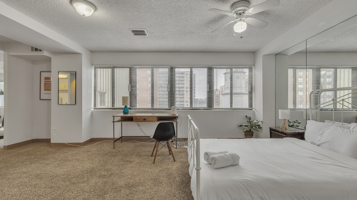 Lebe luxuriös im Herzen der Innenstadt! ✨ Moderne 2-Zimmer-Wohnung im Hochhaus bietet eine atemberaubende Aussicht und erstaunliche Annehmlichkeiten: Funkelnder Pool & Fitnesscenter Praktische Wäschemöglichkeiten Concierge vor Ort & kontrollierter Zugang Gemütliche Lounge & Frühstücks-/Kaffeeservice Business-Center & Unternehmenssuiten verfügbar Bewachte Wohnanlage mit Sonnenterrasse & Grill Entspanne dich, erkunde und gedeile in deiner Oase in der Innenstadt! Buche noch heute!