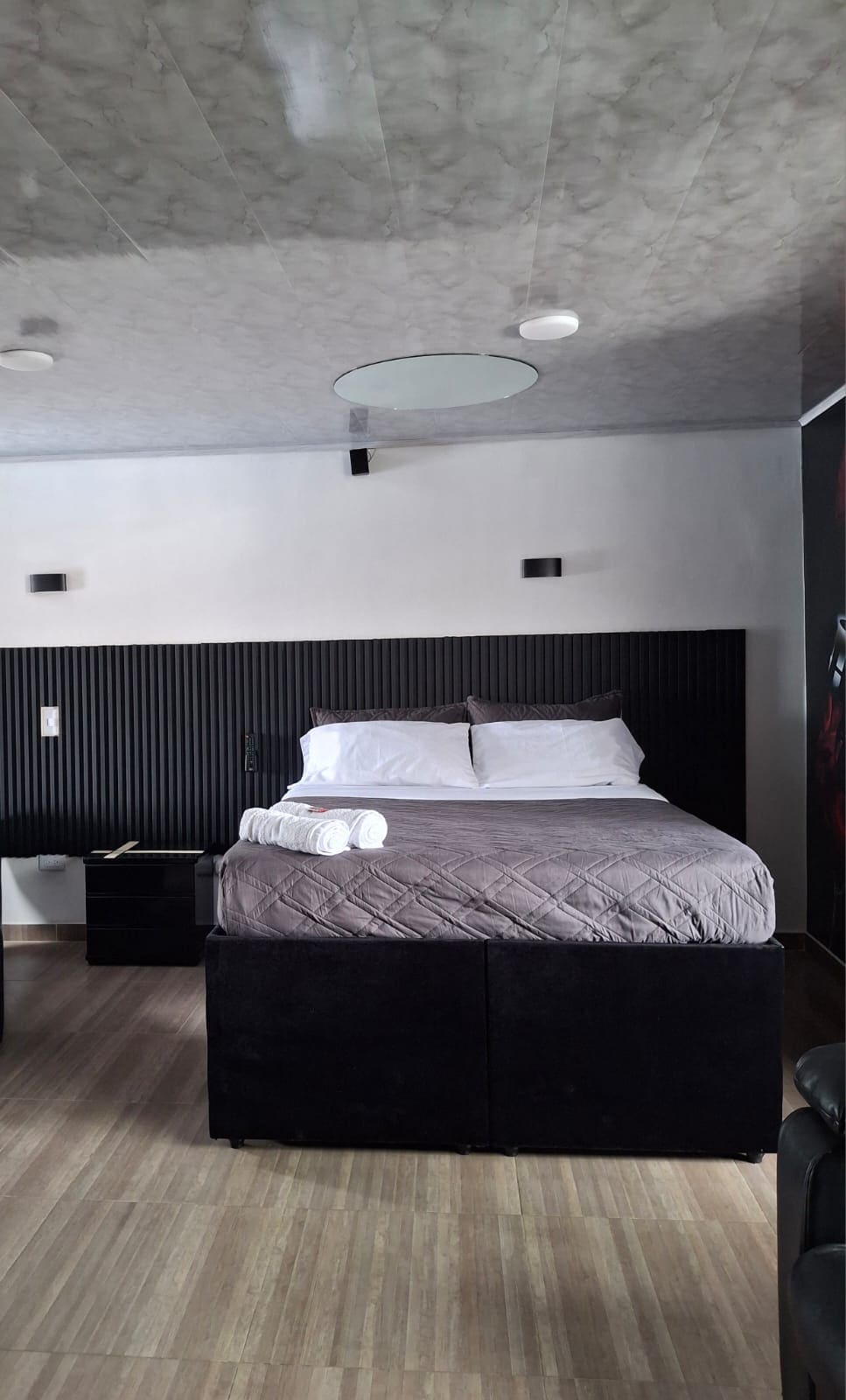 Apartasuite Orion Tunja. Wir haben voll ausgestattete Wohnungen: Jedes Apartment verfügt über 3 Schlafzimmer, 2 davon teilen sich 1 Badezimmer und 1 hat ein privates Badezimmer. Der Service, den wir anbieten, ist pro Zimmer Du kannst 1, 2 oder die 3 Schlafzimmer nehmen, wenn du die Wohnung komplett privat möchtest. Lass dich von der eleganten Einrichtung dieses charmanten Hauses faszinieren.