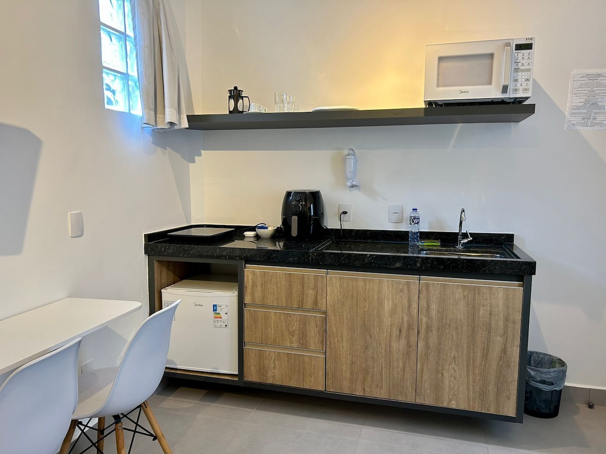 Experience One Eleven in Vila Olimpia. This modern apartment features large windows with breathtaking city views and natural light. The unit boasts 600 Mbps internet and a 4K HD TV. For total comfort, it has a Hot/Cold AC system: 27,000 BTU/h unit in the living room and 10,000 BTU/h in the bedroom. The bedroom is quiet and dark for a restful sleep. Impeccably maintained, you’ll be walking distance to top restaurants and business hubs—a safe, upscale retreat with a stunning urban backdrop.