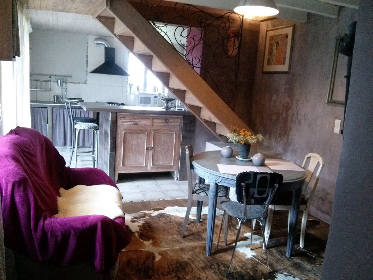 Grand loft de 50m2 aménagé au 1er étage d'une ancienne ferme, dans la campagne vichyssoise, au pied de la Montagne Bourbonnaise, à deux pas de la rivière Allier, proche de Saint Pourçain/Sioule. Le logement est bien équipé, deux ou 3 personnes y seront très à l'aise. Avec le logement vous aurez accès au "Four à Pain" dans la cheminée vous pourrez cuire vos grillades. Idéal pour un repos bien mérité, pour les randonneurs, les sportifs, pour travailler en paix.