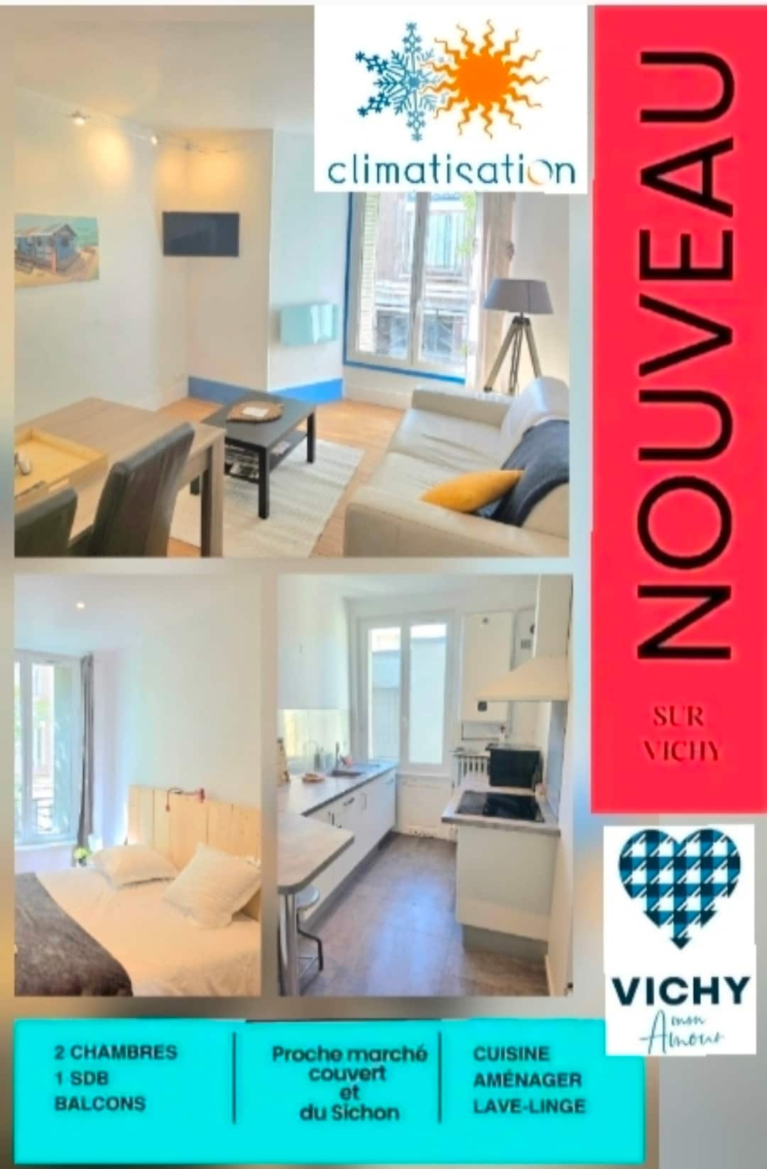 Willkommen in deiner stilvollen Wohnung im Herzen von Vichy! - Geräumige 90 m ² große Wohnung für bis zu 8 Gäste. - Vier komfortable Schlafzimmer und zwei moderne Badezimmer. - Voll ausgestattete Küche mit Nespresso-Maschine und Geschirrspüler. - Highspeed-WLAN und Flachbildfernseher zum Entspannen. - Eigenständiger Check-in mit Zugang zur Schlüsselbox. - In der Nähe von Geschäften, Thermalbad, Parks und dem Bahnhof gelegen. - Kostenlose Bettwäsche einschließlich Handtücher und Bettwäsche werden bereitgestellt.