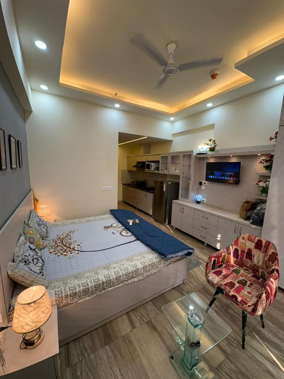 Voll möblierte, luxuriöse Studiowohnung mit allen modernen Annehmlichkeiten im Greater Noida in der Nähe der U-Bahn-Station. Luxuriöses , freundliches und paarfreundliches Studio im Greater Noida in der Nähe von Expo Mart. Was dir gefallen wird: ✔ Einzigartiges Interieur – genieße das faszinierende Interieur. ✔ Moderner Komfort – ein wunderschön eingerichteter Raum mit einem bequemen Bett, gemütlichen Sitzgelegenheiten und stilvollem Dekor. ✔ Voll ausgestattete Küche – Koche deine Lieblingsgerichte mit Leichtigkeit. ✔ Schnelles WLAN & Smart TV – Bleibe in Verbindung und unterhalte dich.