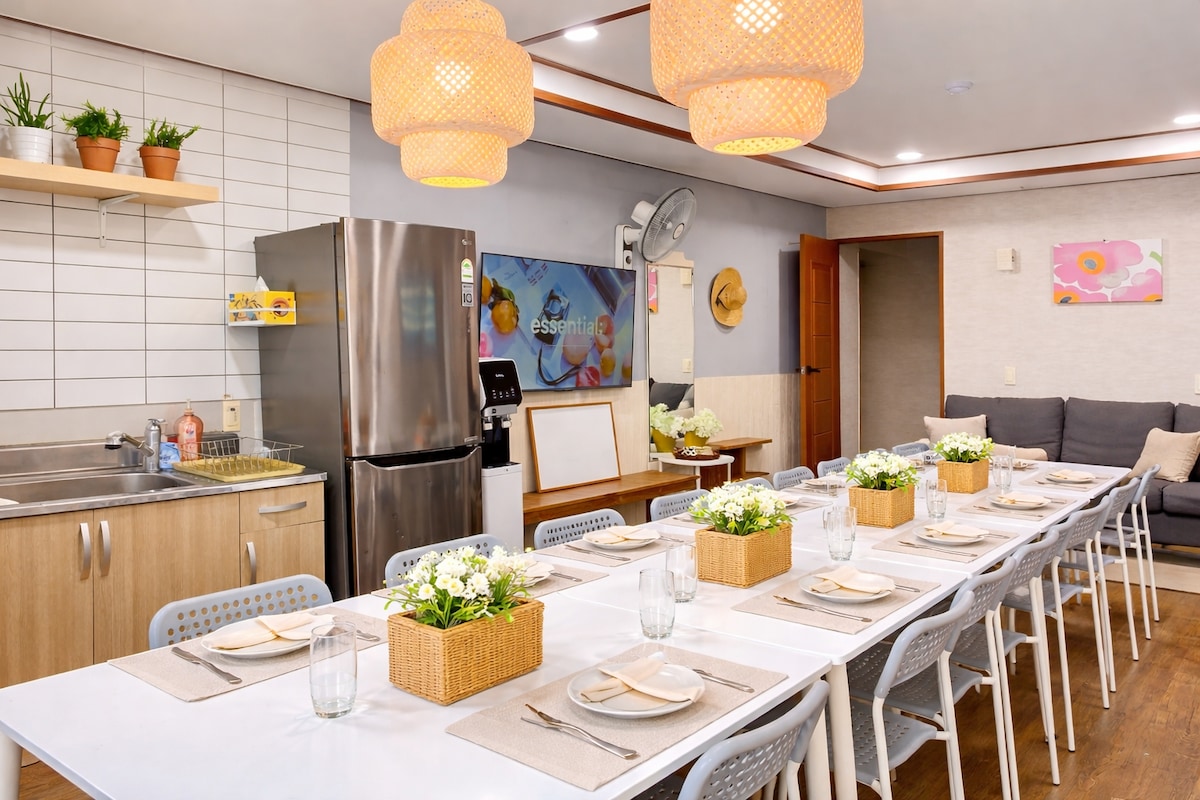 โExperience the slow life of Jeju at 'Pongnang Shade'. Located near Gonae Port in Aewol, our private 2-story villa features a massive 130-pyeong grass garden and ocean views. โโข Private Space: Entire house for one group (4 Bedrooms, 3 Bathrooms, 1 Living Room). โข Dining: Large 10-person table & BBQ terrace, perfect for groups. โข Best For: Large family trips, workshops, or getaways with friends. โWalk to Olle Trails (Courses 15 & 16) and enjoy undisturbed rest in your own private sanctuary.