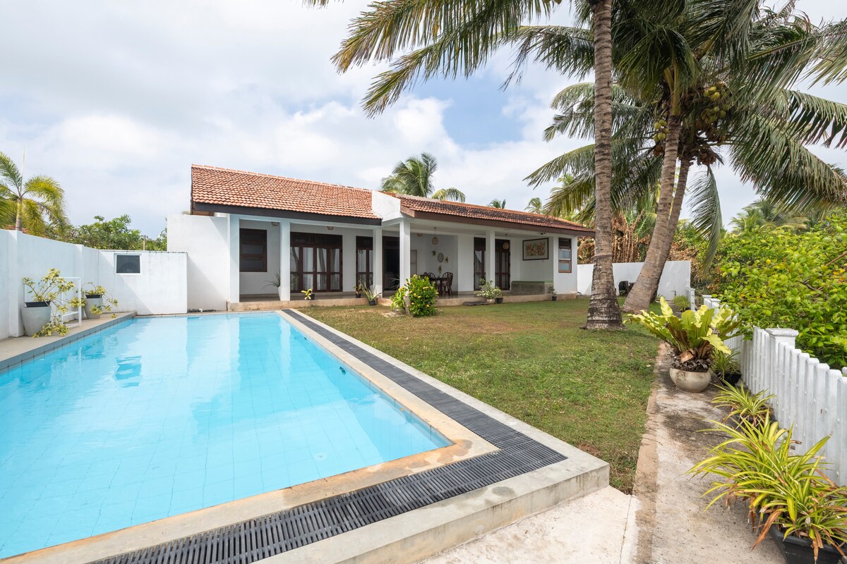 Ruhiges Ferienhaus.. Gemütlich, zwei Betten (Kingsize-Bett und ein Doppelbett), köstliche hausgemachte Mahlzeiten auf Anfrage, viel Grün und schöne Natur überall um dich herum! Die Stadt Ja-Ela ist nur 3 Minuten entfernt, Pamunugama Beach für Sonne & Meer (8 Min.), Negombo Lagoon, Dutch Canal und Muthurajawela Wetlands Sanctuary für Vogelbeobachtung, Bootsfahrten und Angeln (7 Min.). Der Flughafen ist nur eine 10-minütige Fahrt entfernt (über die Schnellstraße). Erkunde den pulsierenden Colombo (20 Minuten). Dein friedlicher Zufluchtsort. Jetzt buchen!
