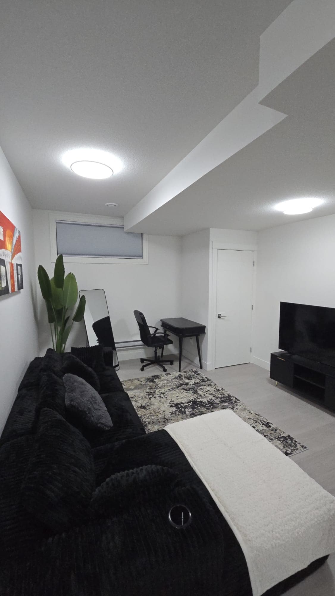 Welcome to our charming basement suite, perfect for travelers, couples, or professionals. Enjoy a private entrance, a cozy bedroom, a full bathroom, a furnished living room, and a fully equipped kitchen for your convenience. On-site laundry with a washer and dryer adds extra ease. Located just 5 minutes from the city airport, this space offers comfort, privacy, and easy access to local attractions. Book your stay today for a peaceful and convenient retreat—we look forward to hosting you!