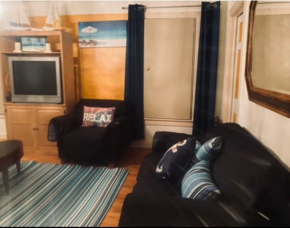 Modernes 1-Schlafzimmer im Stadtzentrum mit Schaukelstuhl und kostenlosen Parkplätzen