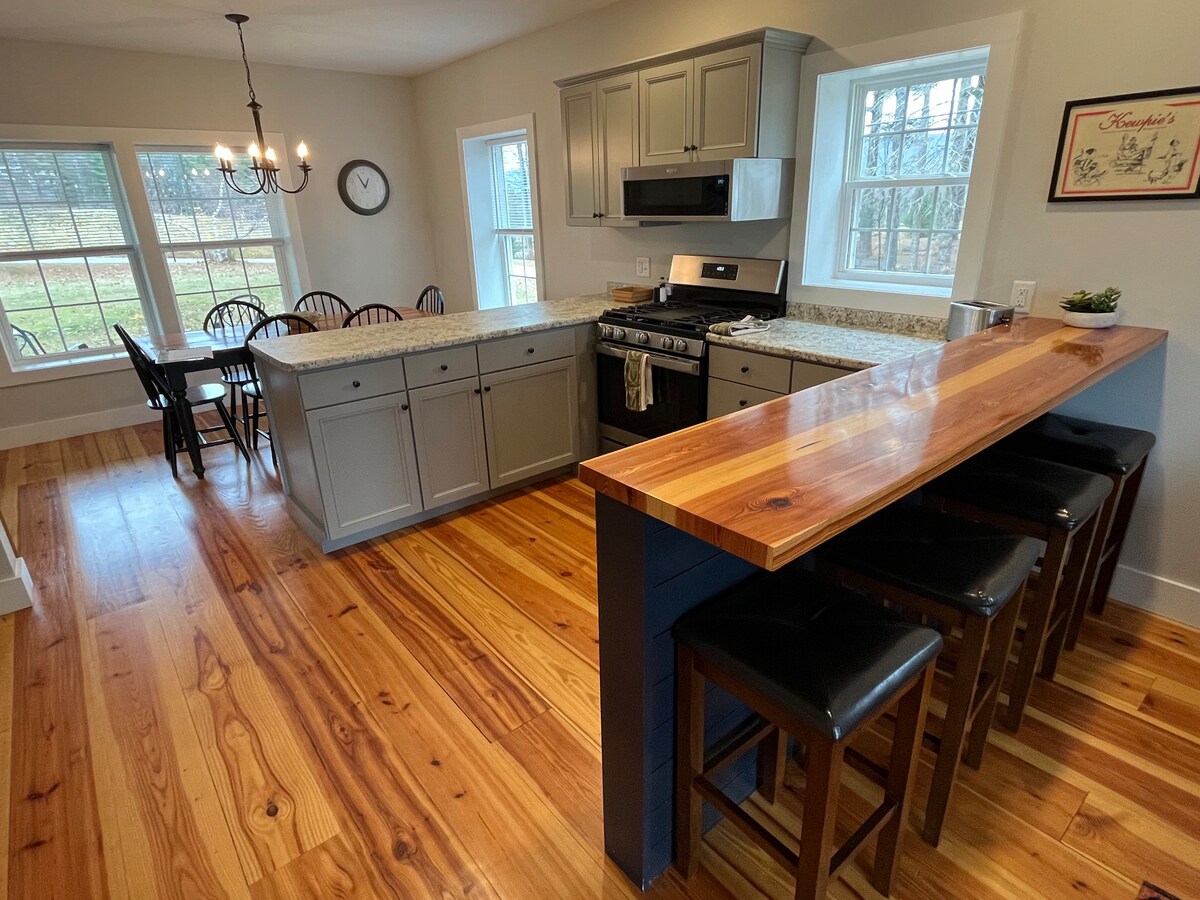 Willkommen in deinem privaten White Mountains-Retreat – einem geräumigen, familienfreundlichen Ferienhaus auf 5 bewaldeten Acres, nur 2 Minuten von der preisgekrönten Innenstadt von Littleton, NH, entfernt. Unser ruhiges Haus mit 3 Schlafzimmern bietet Platz für 8 Personen und bietet die perfekte Balance aus Komfort, Natur und Zugänglichkeit. Entspannen Sie sich am Feuer, grillen Sie auf der Terrasse, kochen Sie S'mores über der Feuerstelle oder laden Sie die Kajaks ein - egal, ob Sie einen erholsamen Familienurlaub, ein Büro im Wald oder ein Abenteuer-Basecamp suchen, Stone's Throw ist der richtige Ort.