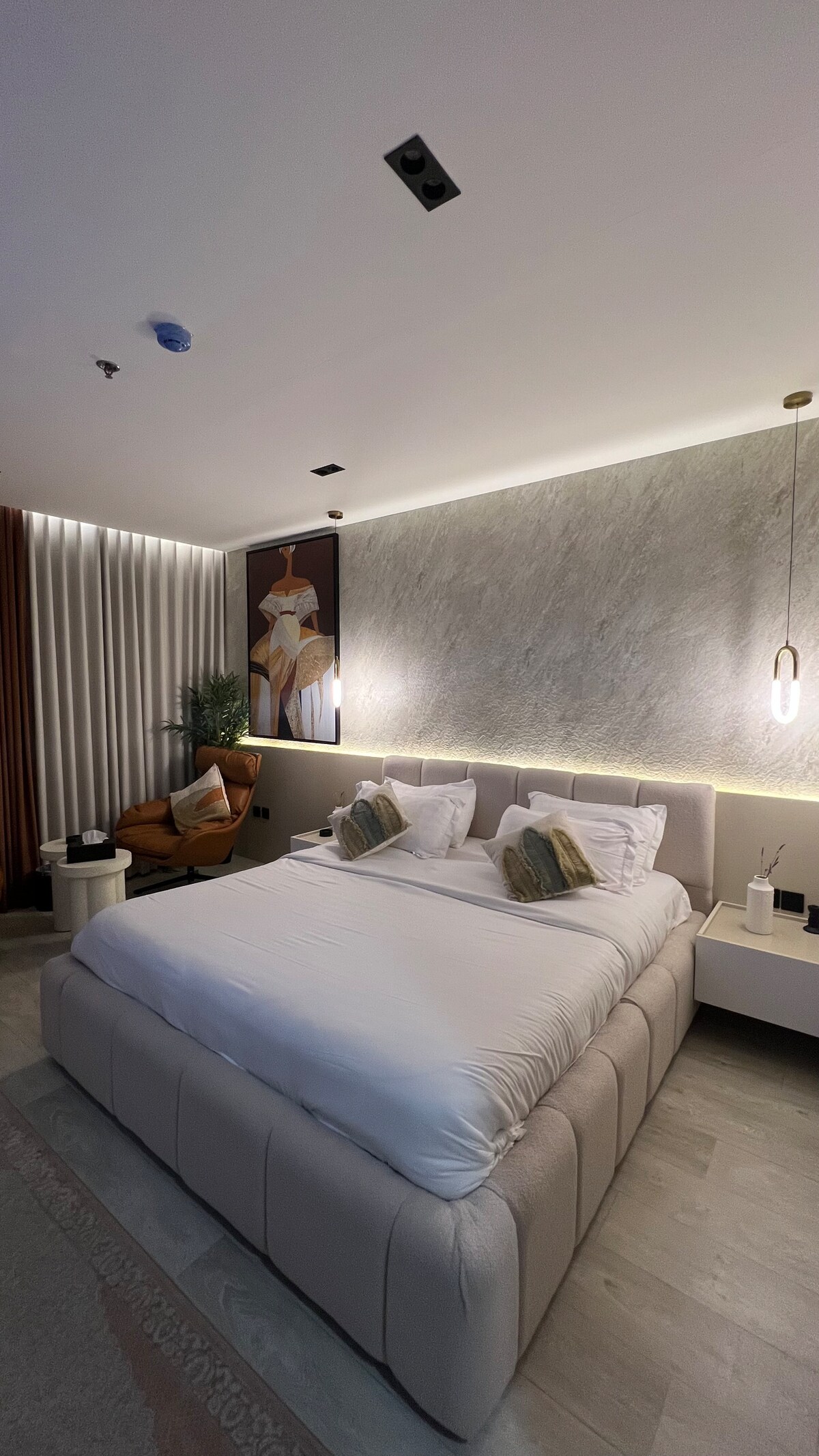 M.K1 Residence - Apt Near the Bridge 3 Bedrooms Fully Furnished 2 Bathrooms 1 Toilet 1 Living Room With A " 75" LG UHD Smart TV Wi-Fi "Fast Fiber Optic Internet" 5G Fully equipped kitchen Dining table Smart Entry Balcony with outdoor seating شقة بالقرب من الجسر 3 غرفة نوم 2 دورات مياه 1 مرحاض LG UHD Smart TV "غرفة معيشة مع شاشة "75 إنترنت (ألياف ضوئية) سريع مطبخ متكامل طاولة طعام دخول ذكي بلكونة مع جلسة خارجية
