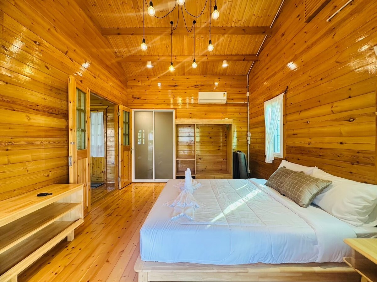 Private and peaceful cabin amidst coconut groves and tropical fruit trees. Surrounded by landscaped gardens and ponds, the area is filled with a variety of trees and flowers. Complete your holiday and relaxation atmosphere with indoor activities on such as boating, fruit picking, and outdoor BBQs, and there is also a communal kitchen for use. It is only 1.5 hours from Suvarnabhumi Airport.