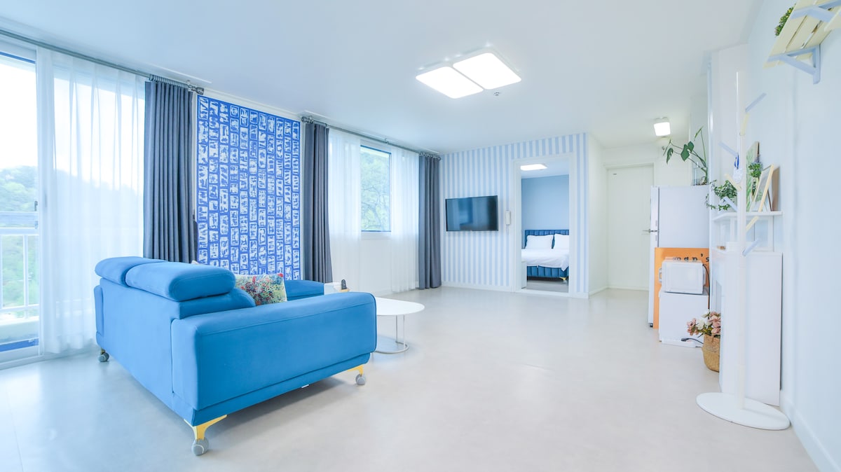 Kommen Sie in unsere Unterkunft und genießen Sie einen erholsamen Urlaub auf dem Land! Dies ist ein gemütliches, 132m² großes Einfamilienhaus in Changpyeong, das als Slow City bekannt ist. Es ist ein neues Haus, das ich selbst gebaut und sorgfältig verwaltet habe. Wenn Sie das Tor öffnen und eintreten, erwarten Sie eine große Rasenfläche und eine offene Terrasse. Hier können Sie eine Grillparty veranstalten oder mit Ihrem Haustier spielen und eine tolle Zeit haben. Wenn Sie das Haus betreten, erstreckt sich ein offenes Wohnzimmer, und die herrliche Aussicht auf den Wolbongsan, der aus dem Fenster zu sehen ist, bietet Heilung. Rund um die Unterkunft gibt es auch einen Spazierweg durch einen Kiefernwald, auf dem Sie den entspannten Charme von Changpyeong spüren können, während Sie langsam spazieren gehen. Und nur 40 Meter vom Haus entfernt gibt es auch den Golfplatz von Changpyeong (Par 3), den Sie ohne Reservierung bequem besuchen können! Es ist perfekt, um sich leicht zu bewegen und die Freizeit zu genießen. Erleben Sie die täglich wechselnde Landschaft des Sonnenuntergangs, genießen Sie die Ruhe und Heilung und kehren Sie mit neuer Energie zurück!