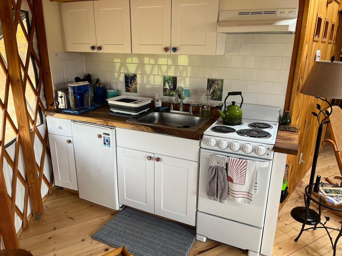 A Treehouse. Reconnect with nature at this unforgettable escape. Nestled in 28 acres of woods with hiking trails. This unique newly constructed all electric 525 sq foot elevated structure offers a wrap around deck for an ever changing view. King size bed & new technology foam offers complete comfort in separate climate controlled bedroom. Heated bathroom floor is a “warm” surprise. Optional seasonal outdoor shower for the adventurous. Kitchen lacks nothing tucked conveniently in the great room.