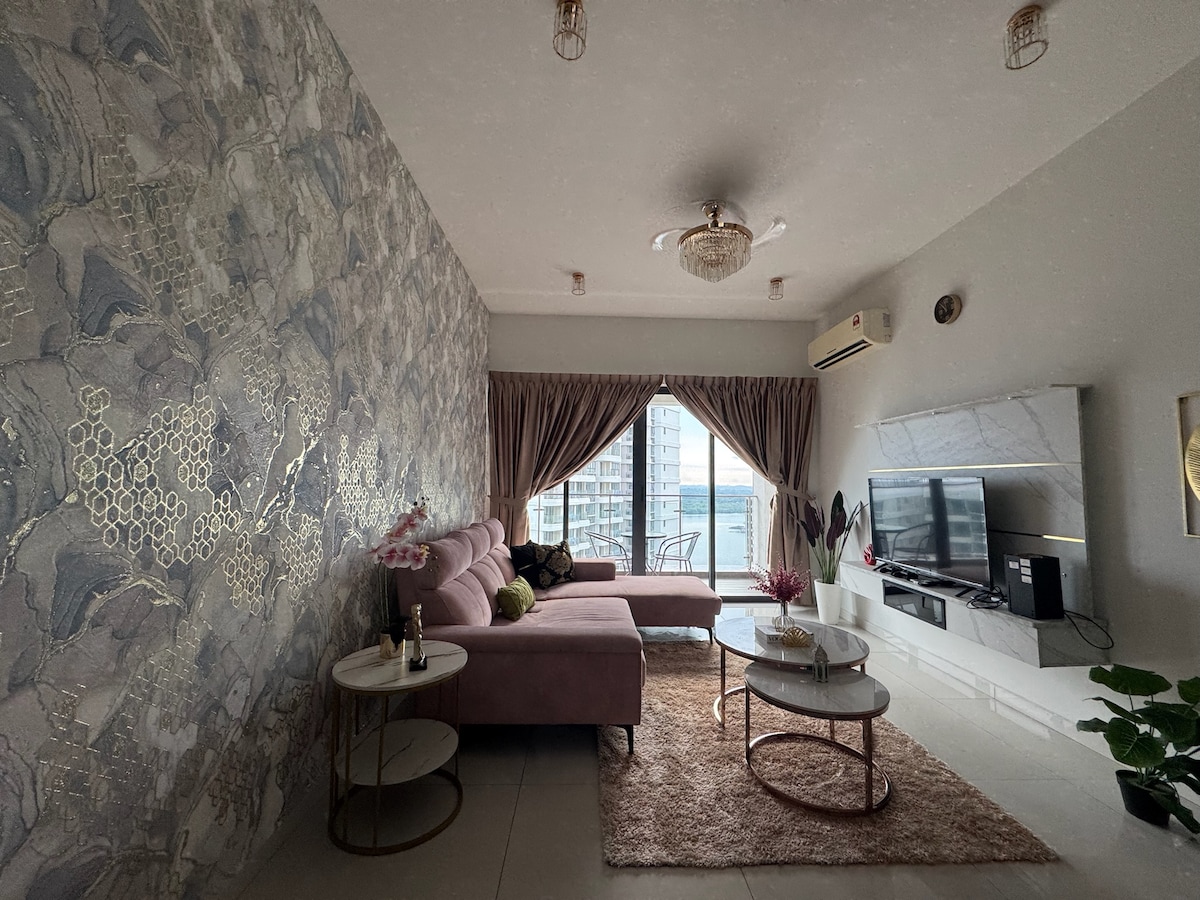 „Luxuriöses Refugium am Meer – perfekt für Familien und Freunde“ Willkommen in unserer stilvollen Eigentumswohnung in Danga Bay, Johor Bahru, die für Entspannung und Spaß entworfen wurde: 3 Schlafzimmer und 3 Bäder = 8-10 Gäste Kinderzimmer: Etagenbett mit Rutschen. Karaoke-Set: Perfekt für unterhaltsame Abende. Insta-würdiger Balkon: Pflanzenwand mit Neon-Beschilderung für atemberaubende Fotos. Brettspiele wie Monopoly und Cluedo für Familienspaß! Genieße den atemberaubenden Meerblick und die nahegelegenen Sehenswürdigkeiten. Buche jetzt für einen unvergesslichen Aufenthalt!