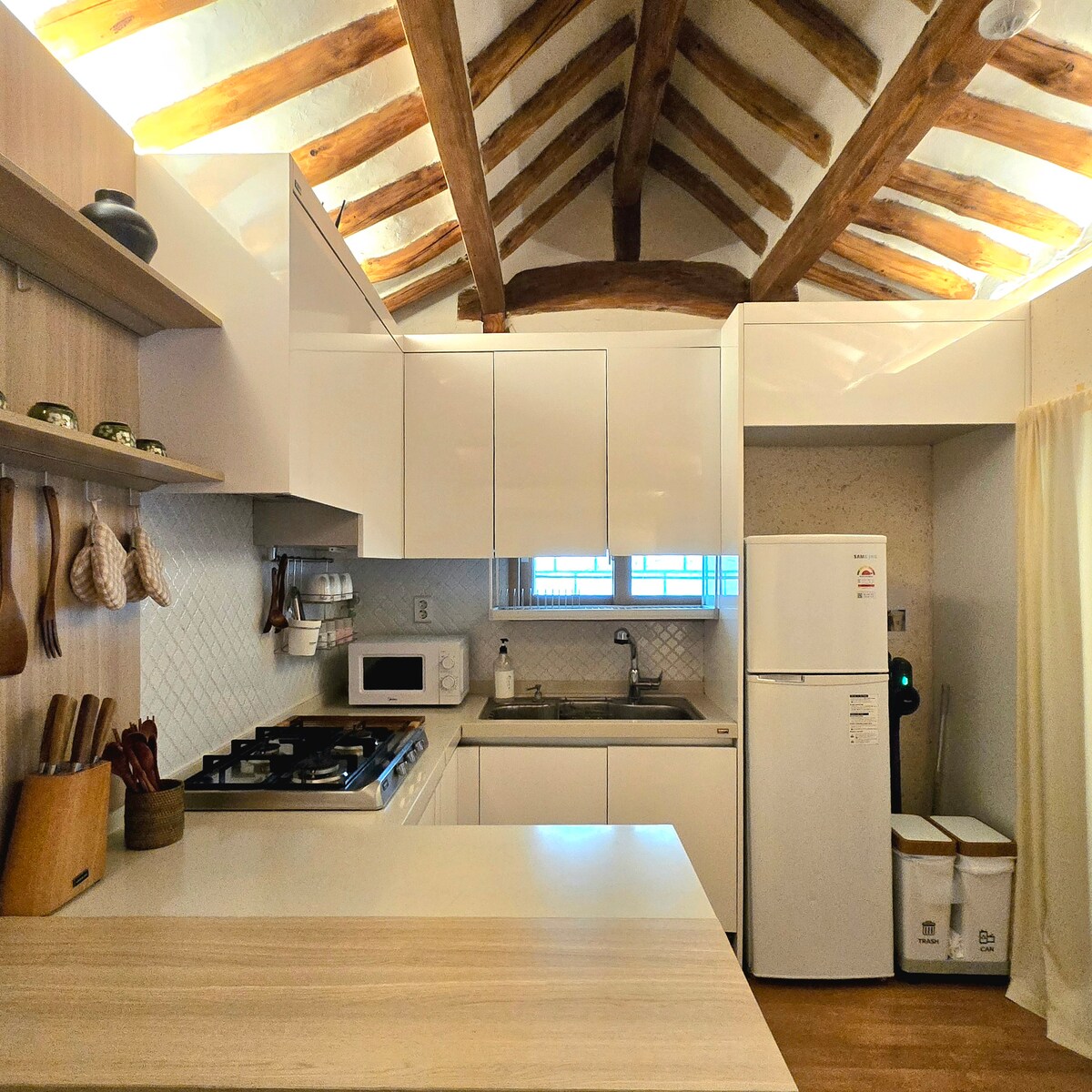 스테이머무름은 관광지도 아니고, 멋진 경치가 있는 곳도 아닙니다. 주변에 특별한 볼거리나 편의시설도 없고, 그냥 평범한 농촌 마을 한가운데 있는 오래 된 시골집입니다. 도시 아닌 어딘가로 떠나고는 싶은데 호텔은 답답하고, 캠핑은 불편한 저 같은 집순이를 위해 만든 시골 휴식처입니다. 할 것도, 볼 것도 없이 아무것도 하지 않고, 아무 생각 없이 소중한 사람들과 함께 줄기차게 먹고 늘어져서 푹 쉴 수 있는 곳입니다. 🕒 체크인: 오전 11시 / 체크아웃: 오후 6시 🌟 편의시설 86인치 TV 비데, 원적외선 전기장판 12인용 식기세척기, 오븐 전자레인지 세탁기 & 건조기 공기청정기, 무선청소기 냉온 정수기, 음식물 처리기 👉 실외 흡연 가능 / 실내외 취사 가능 / 마당 주차 & 전기차 충전 가능 🔥 장작 캠프파이어 / 가마솥 뚜껑 요리 가능 💸 <장기 숙박 할인> 2박: 10% 할인 / 3~4박: 15% 할인 / 5~6박: 20% 할인