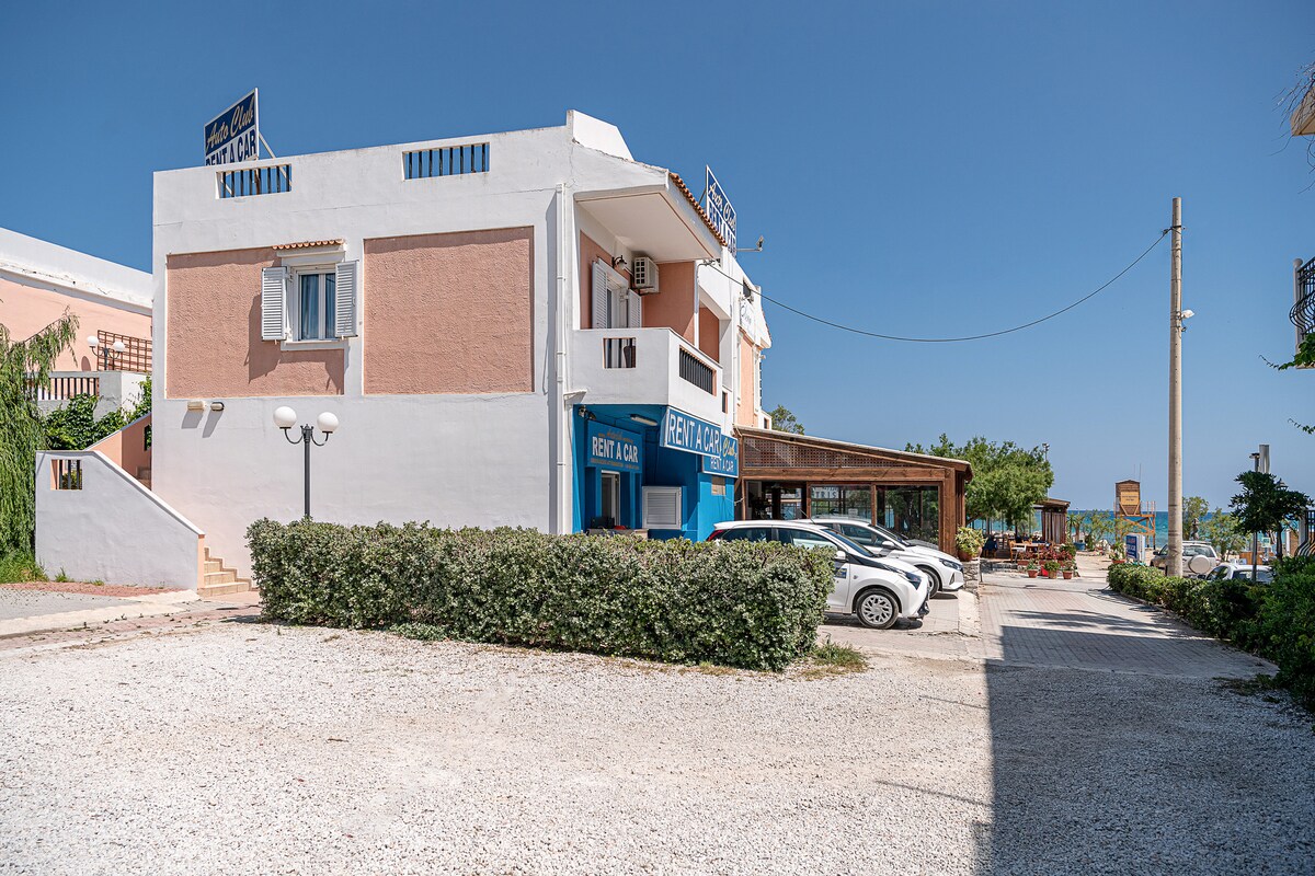 Genießen Sie Ihren Urlaub in einer ruhigen Umgebung,nur 100 Meter vom wunderschönen goldenen Strand entfernt, oder chrisi akti in Landessprache und nur 2,5 km vom Stadtzentrum entfernt, ist das Gebiet ideal, um die nächsten Strände am Morgen und die Stadt Chania am Abend zu erkunden. Das Zimmer befindet sich im Erdgeschoss und verfügt über einen Balkon mit Meerblick, auf dem du dich entspannen und dein Frühstück oder deinen Kaffee genießen kannst, während du deinen täglichen Ausflug oder deine Aktivität planst!