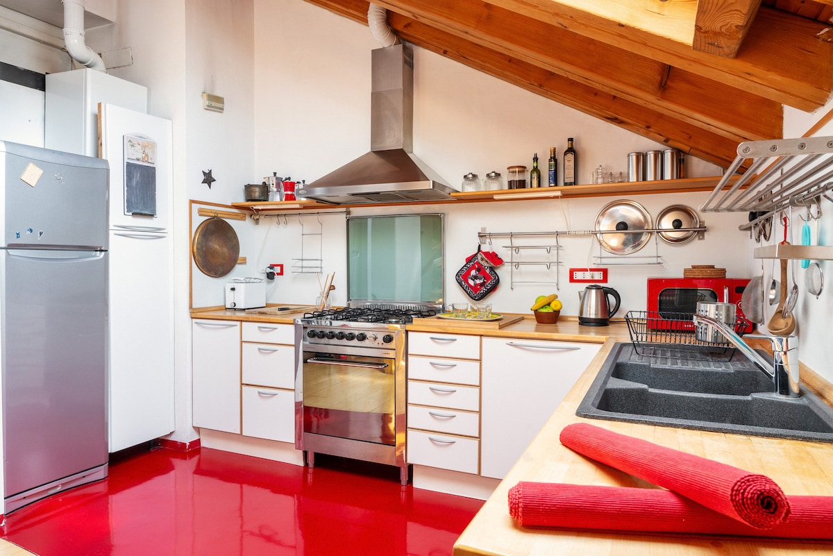A stylish, bright loft ideal for travelling people, professionals/remote workers and leisure guests alike. 60 sqm with exposed beams and private terrace. Very fast Wi-Fi 1 Gbps fiber, large table desk, comfortable workspace, AC and modern comforts. Situated in a trendy, cosmopolitan area, full of Art Nouveau architecture, independent cafés, design bars, and international restaurants. Just a few minutes walk from Corso Buenos Aires, one of the longest shopping streets in Europe.
