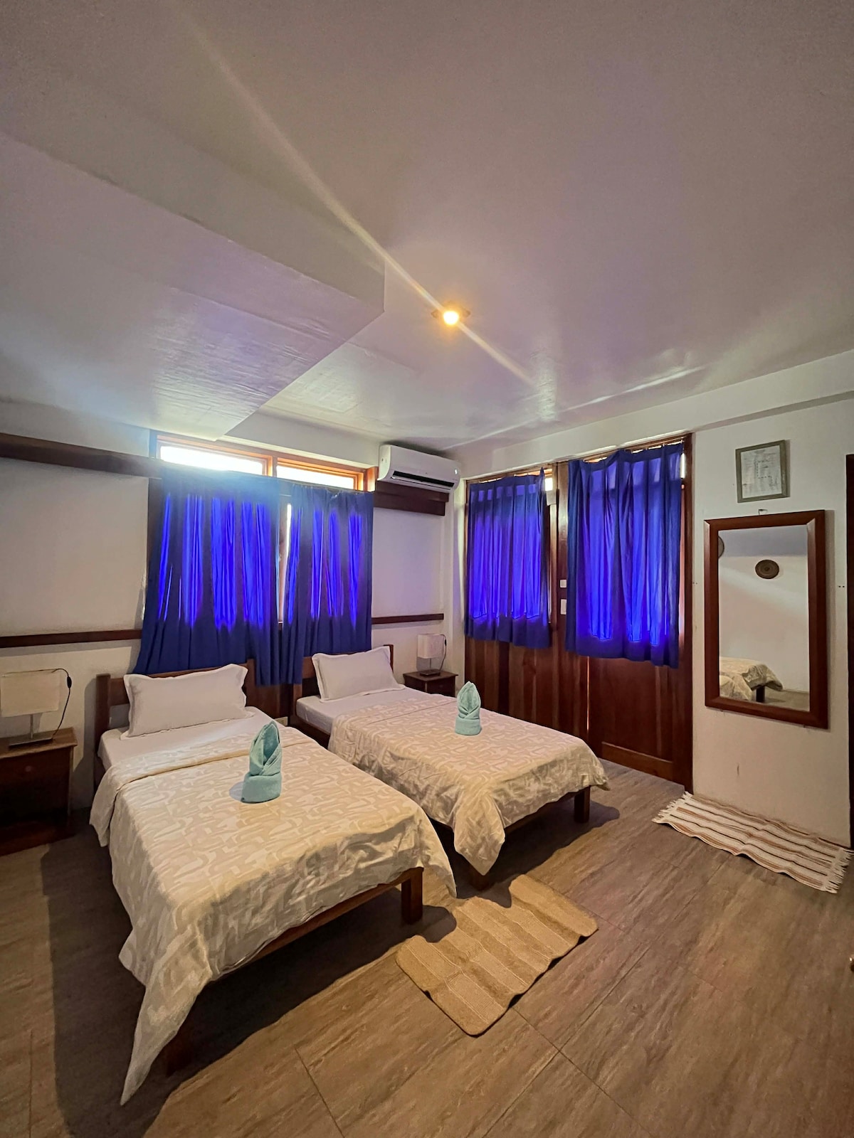 Privatzimmer in einem traditionellen philippinischen Haus in der malerischen Fischergemeinde San Pedro Beach. Es ist ein 2-minütiger Spaziergang zum wilden Strand neben dem luxuriösen Mithi Resort und 15 Minuten zu Fuß zur Höhle. Das Zimmer ist mit Klimaanlage, Queensize-Bett, Schrank und einem Gemeinschaftsbad mit heißer Dusche und Pflegeprodukten ausgestattet. Es gibt auch eine Veranda mit Hängematten, tägliche Zimmerreinigung, 200 Mbit/s WLAN, Restaurant, Tour-Assistent, Massagen, Rollerverleih und andere Dienstleistungen. Bitte beachte: Dies ist KEINE LUXUSUNTERKUNFT.