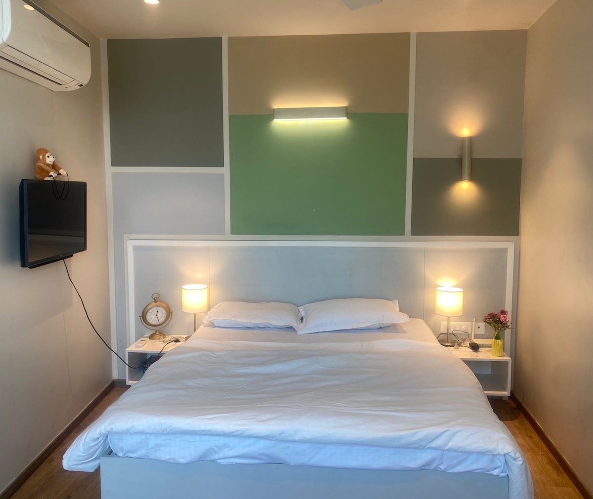 Entspanne dich mit deinen Liebsten und deiner Familie in einer einzigartigen und ruhigen 1-BHK-Wohnung mit allen erforderlichen Dingen. Unsere Einheit befindet sich im Herzen von Sector 106, Gurugram. Wir möchten unser Luxury 1 BHK Service Apartment für kurze und lange Aufenthalte anbieten. Das Hotel liegt 1 km vom Dwarka Expressway und eine kurze 15-minütige Fahrt vom U-Bahnhof Yashobhoomi entfernt. Der Bahnhof Gurgaon liegt nur 3 km entfernt! Voll ausgestattete Küchenzeile mit Glaswaren, Besteck und allen erforderlichen Dingen. Mach ein paar Erinnerungen an diesen einzigartigen Ort.