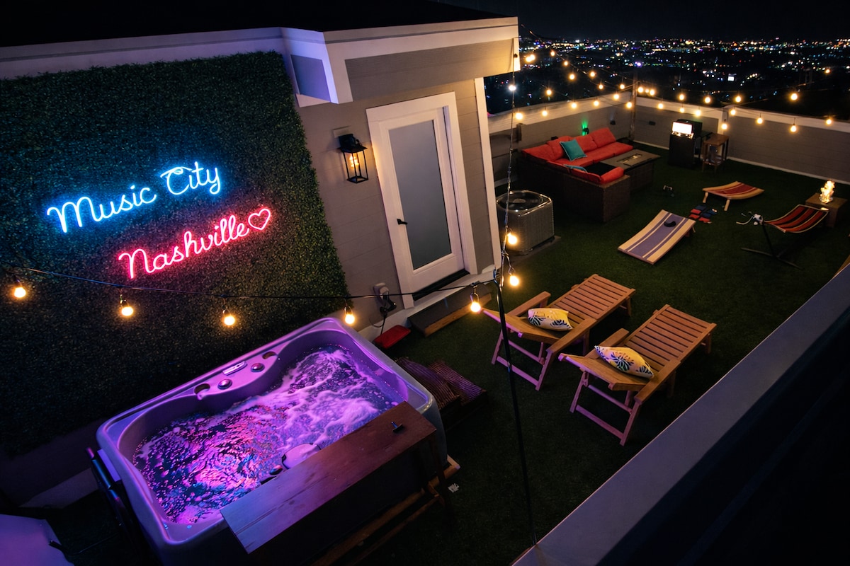 Rooftop Hot Tub + Arcade | 4BR Music City Stay