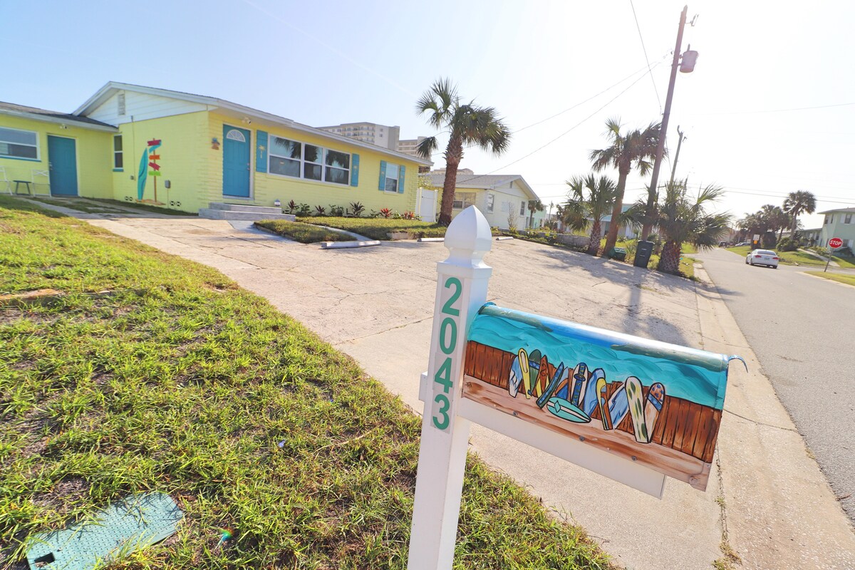 Absolut schöne Lage mit einer Surfschule, Geschäften, Essen, Strand und Minigolf fußläufig erreichbar. Du kannst die Meereswellen sehen und hören, da sich das Haus auf einer Sanddüne befindet! Bringe deine Gruppe in dieses komplett renovierte, zentral gelegene, private Strandhaus! Das Meer befindet sich direkt gegenüber DER A1a-Straße. Du musst nicht auf Aufzüge oder einen Check-in-Schalter warten oder dich mit einem engen Parkplatz für Eigentumswohnungen herumschlagen. Du musst nicht für Strandparkplätze bezahlen. Tritt ein in eine der schönsten Gegenden von Daytona. Du könntest einen Golfwagen mieten.