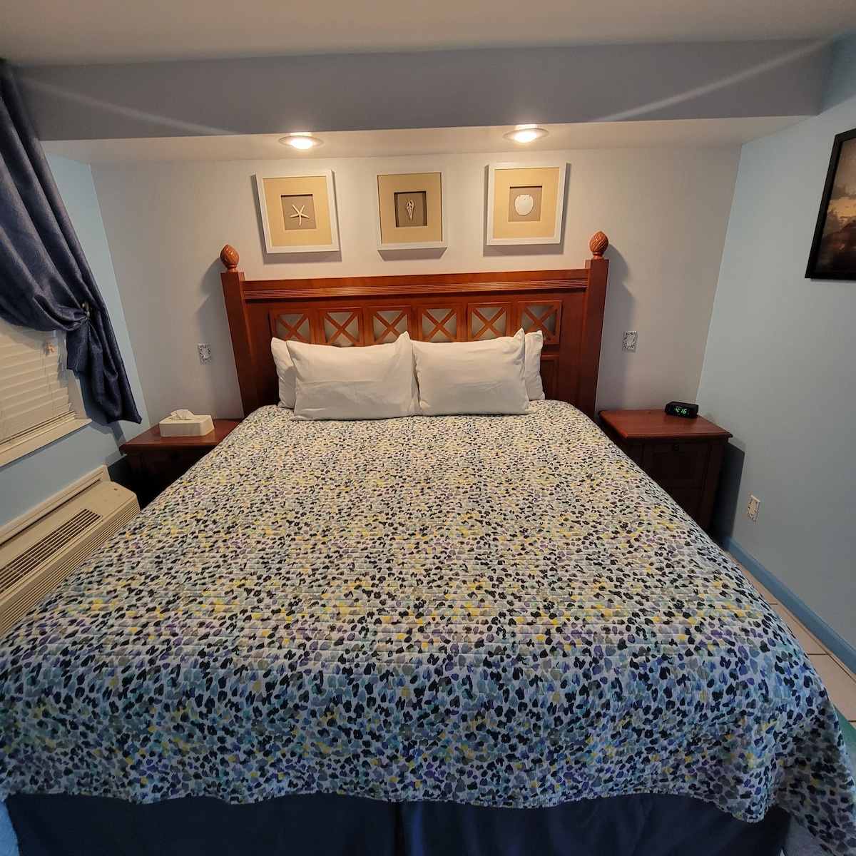 Spacious Great View Walk to everything! The Fountain Beach #402. Condo is Spacious and private for romance, couples, family and friends. Just under 700 square feet on One Bedroom w/2 queens, private bath w/2 person jetted tub and shower , large screen TV, 2 private balconies. Separate living room w/queen day bed, full bath and private balcony. Large screen TV, dining area with ocean view and full kitchen as well. Recent upgrades include new refrigerator, new carpet and new patio furniture
