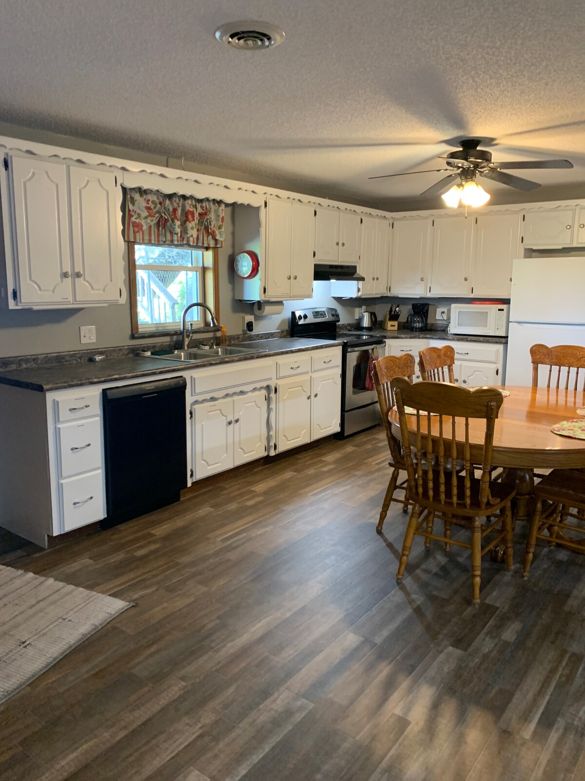 Ländliche Umgebung, nur 2 Meilen westlich von Leon und weniger als eine Meile vom Little River Lake entfernt. Dieses neu renovierte Haus verfügt über eine geräumige, voll ausgestattete Küche, einen Essbereich mit einem 10-Personen-Bauernhaustisch, ein Wohnzimmer mit 3 voll ausgestatteten Sofas, von denen eines gleichzeitig als Queensize-Bett dient. Es gibt einen Smart-TV. Schlafzimmer 1 und 2 haben ein Queensize-Bett, Schlafzimmer 3 hat 2 Queensize-Betten. Geräumige Terrasse mit Essmöbeln. Es gibt eine kreisförmige Auffahrt, um Boots-/Anhängerparkplätze zu ermöglichen.