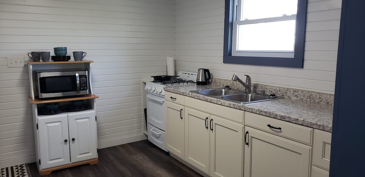The perfect solution for your southern Iowa trip. Located close to Ellston Ia & Sun Valley Lake, our smaller unit is like a hotel room. It has a queen size bed and a sleeper sofa. You have your own small kitchen. A patio in the front that over looks the back yard and the burn pit. The bathroom has a fabulous shower and plenty of hot water. Stocked with towels and comfy bedding this place is truly a hideaway. The kitchenette has a microwave, fridge and plenty of other kitchen utensils and dishes.