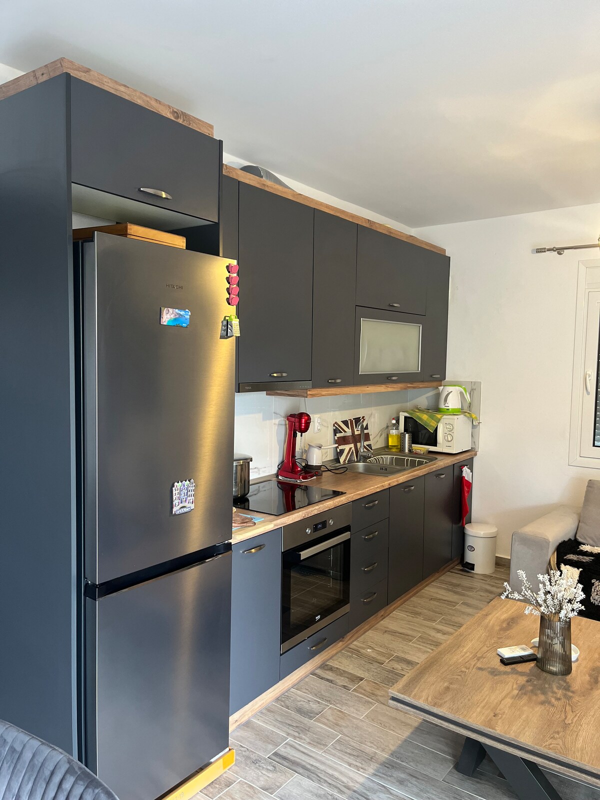 Es ist die richtige Wahl, um sich von einer langen Reise auszuruhen. Entdecken Sie die Sehenswürdigkeiten der Region wie das Skizentrum Vasilitsa in 50 Minuten, Meteora, das Nationale Kletterzentrum in 35 Minuten und die Elfenmühle in 45 Minuten. Sie können Ihr Auto an einem sicheren Ort außerhalb des Geländes parken, um es vom Fenster des Hauses aus zu überwachen. Die Unterkunft verfügt über eine Waschmaschine mit Trockner, einen Fernseher in beiden Zimmern und ist im Allgemeinen voll ausgestattet.