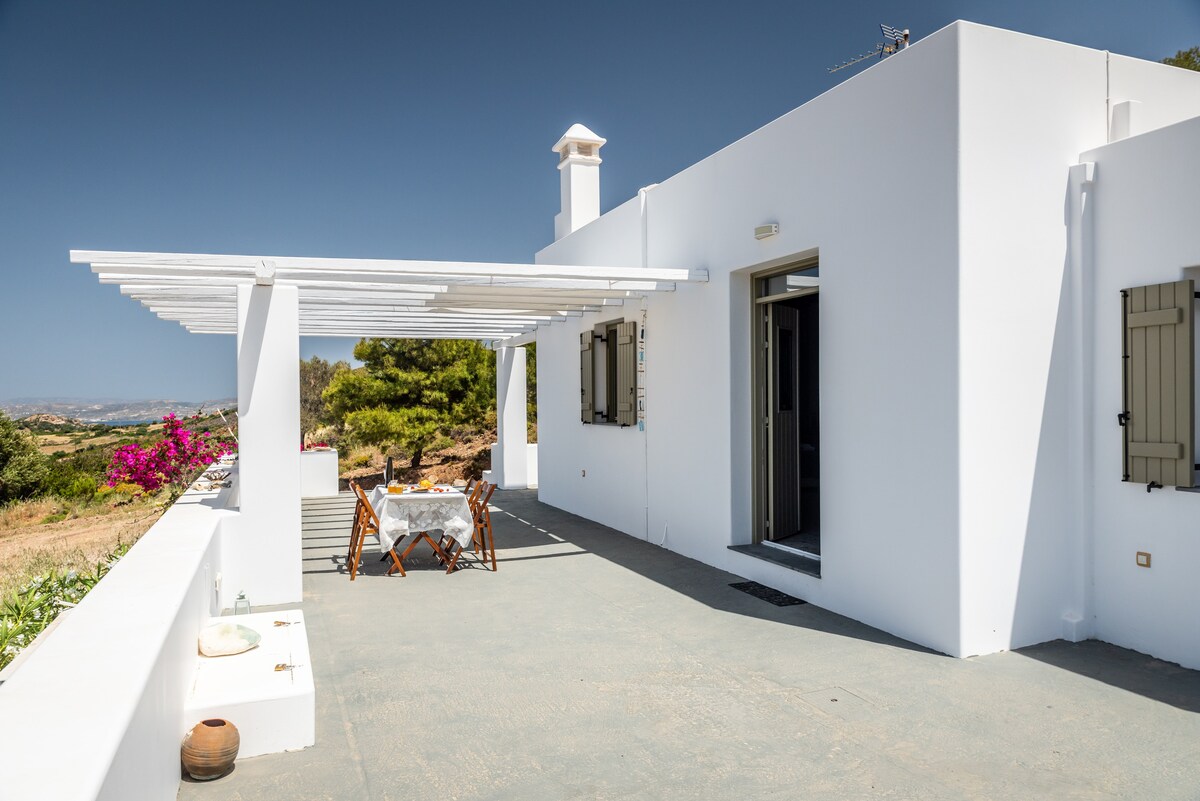 Es handelt sich um ein schönes 75 Quadratmeter großes Haus direkt am Strand von Faros. Es ist das Erdgeschoss einer Doppelhaushälfte,entworfen von einem bekannten ikarischen Architekten. Der private Innenhof erstreckt sich buchstäblich bis zum Strand.Ideal für Familien,die einen angenehmen und friedlichen Aufenthalt suchen, aber auch für Faros,die einen stressfreien Urlaub verbringen möchten. Der Blick auf die östliche Seite der Ägäis mit den gegenüberliegenden Inseln, den Furni,ist einzigartig.
