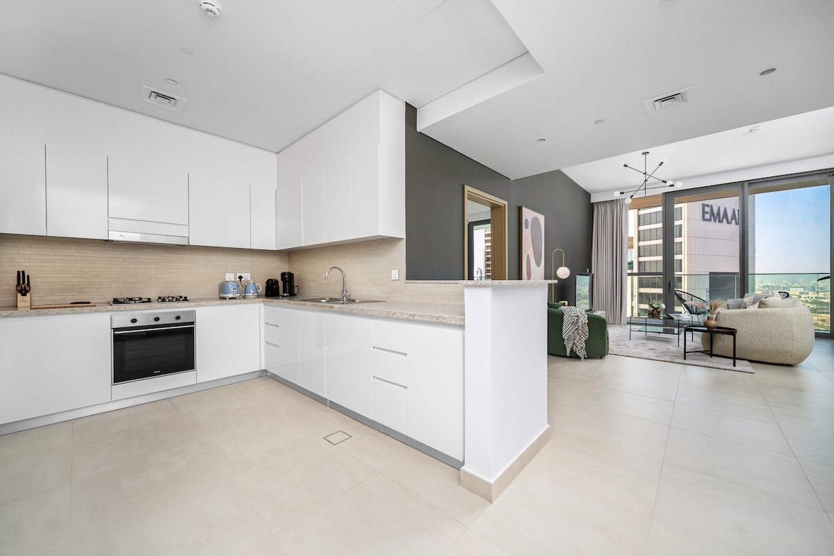 Gönne dir Luxus in unserer 2-Zimmer-Wohnung am schönsten Ort in Dubai mit Panoramablick auf die Burj Khalifa Cityscape & Creek Sea View. Entspanne dich in diesem ruhigen und eleganten Aufenthaltsort. Nutze die erstklassigen Annehmlichkeiten des Gebäudes, darunter ein Infinity-Pool, ein Fitnessstudio, ein Kinderspielplatz, ein Kinderbecken, ein Mehrzwecksaal, ein Badmintonplatz und ein Tennisplatz. ☑️10 Minuten zum Burj Khalifa & Dubai Mall und SHZ ☑️14 Minuten zu den Flughäfen von Dubai ☑️10 Minuten zum Wildlife Sanctuary ☑️18 Minuten nach Palm Jumeirah