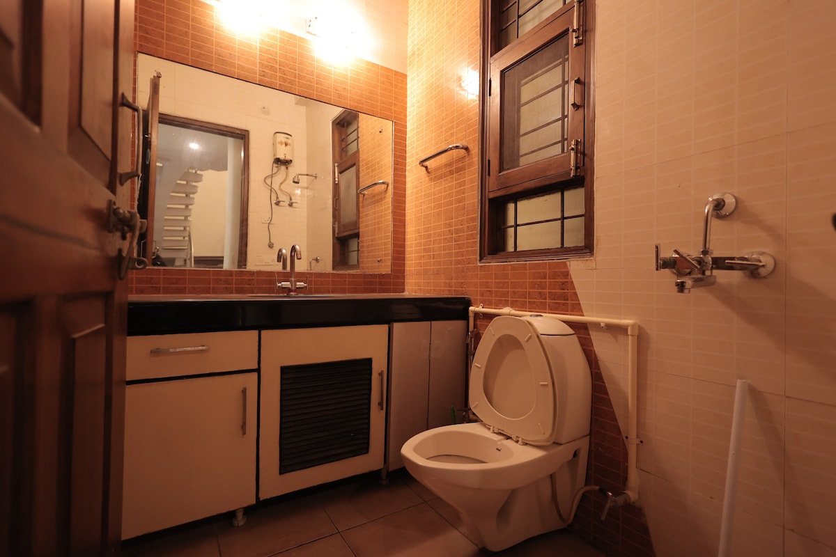 Möchtest du dich mit Familie, Freunden oder Kollegen im Schoß der Natur in Neu-Delhi verbinden? Möchtest du die ideale Mischung aus Charme und Gastfreundschaft der alten Welt mit allen modernen Annehmlichkeiten erleben? Möchtest du auf weitläufigen Rasenflächen unter Obstbäumen spazieren gehen oder auf Pfauen warten? Wenn JA, dann WINKT diese unabhängige 3-Zimmer-Wohnung der Shiv Niwas Villa mit eigenem Balkon und Dachterrasse, intelligenten Schlössern, im gesamten Gebäude verfügbarem High-Speed-WLAN, kostenlosen Parkplätzen und fürsorglichen Köchinnen!
