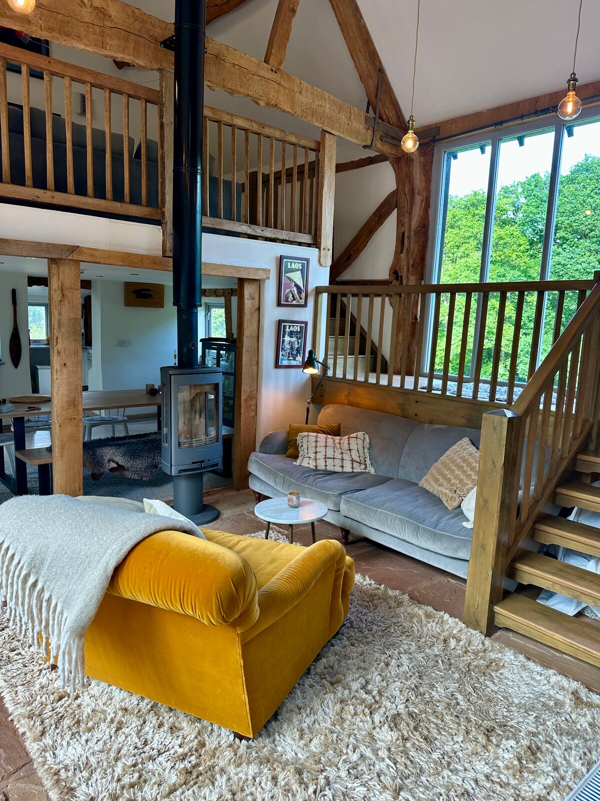 This beautiful 18th century barn, with gas central heating and air conditioning is in the heart of vast fields, with 360 degree views of Hereford city, the black mountains and surrounding villages. This large building with direct access to our own private woods and acres of fields is perfect for stargazing and family games. Sitting on top of many rambler paths this retreat is perfect for groups that want to relax in the quiet countryside. We also offer party planning and family activities.