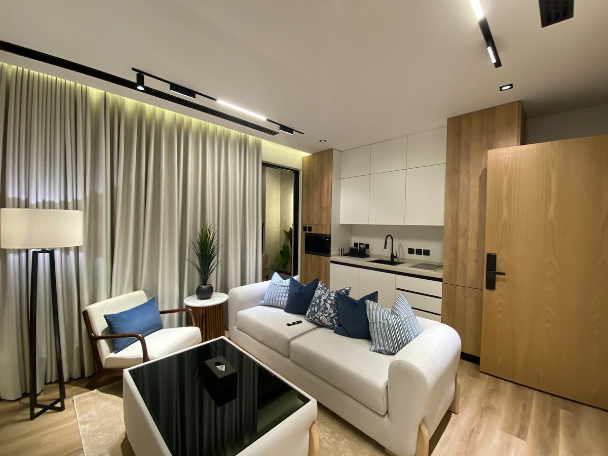 Lust auf einen Zufluchtsort in Riad? Entdecken Sie Ihre private Oase in dieser stilvollen Wohnung. Entspanne dich nach der Erkundung der Stadt oder mache es dir für längere Aufenthalte gemütlich. Genieße einen frischen Nespresso und filmische Nächte auf dem 65-Zoll-Bildschirm. In der Nähe von Boulevard City, Riyadh Park und Top-Attraktionen. Brauchst du etwas? Geschäfte und Dienstleistungen sind nur wenige Schritte entfernt. Bleibst du länger? Schreib uns, um exklusive Angebote zu erhalten. Dein unvergesslicher Aufenthalt in Riad beginnt hier!