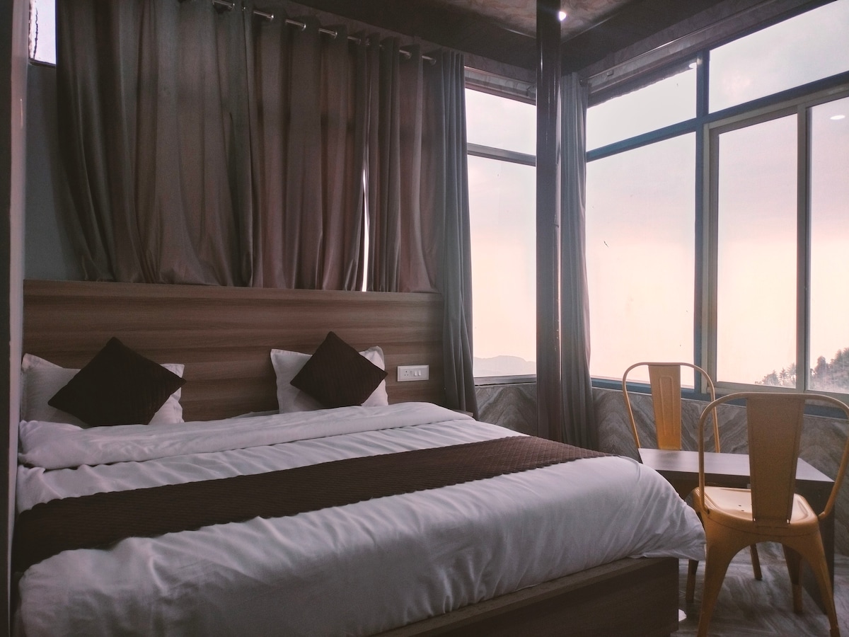 Cedar Club Room at Countryside By Alcor, Dhanaulti. Featuring a king-size bed and panoramic mountain views, this room offers modern amenities like free Wi-Fi, complimentary toiletries, and on-request heating. Guests can choose from various meal plans, including room-only, bed and breakfast, or breakfast with lunch or dinner. Situated near attractions like Eco Park and Surkanda Devi Temple, it's an ideal retreat for those seeking tranquility amidst nature.